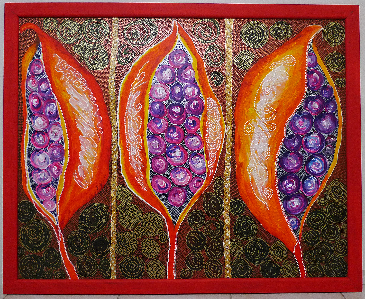Pods (109 cm x 88 cm) - Acrylic on Card - Timber Framed