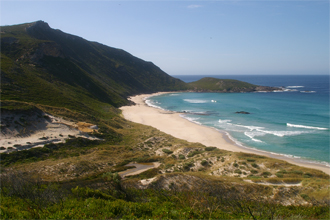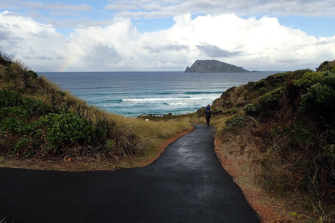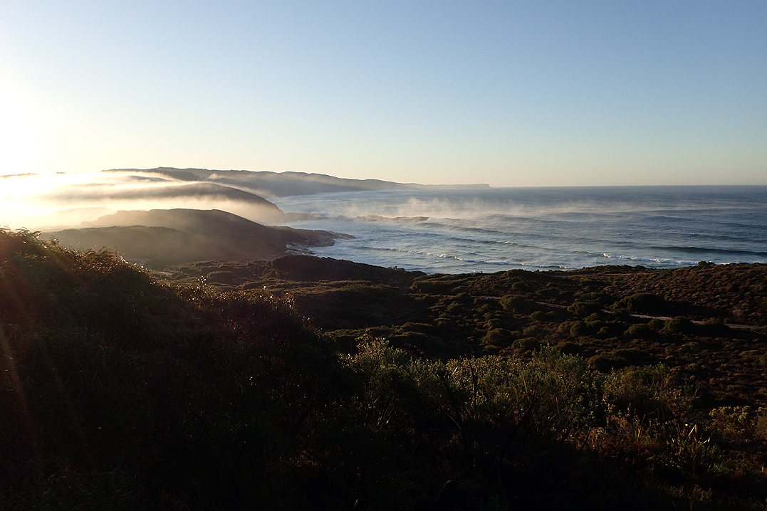 It was really worthwhile to watch the sunrise from the boulder and then we got on with our day. Our first break was at Light’s Beach where we chatted to a fisherman. The route here goes along sealed tracks for a way. We still could not believe our luck with the weather!