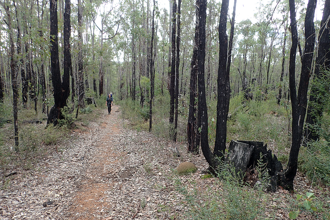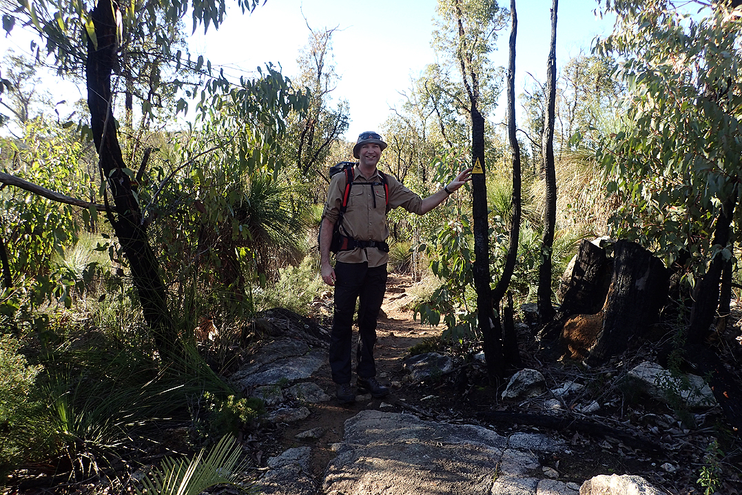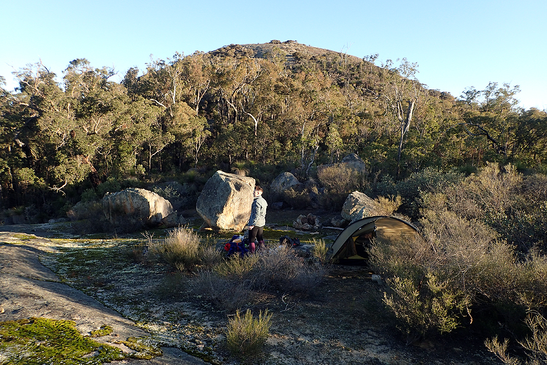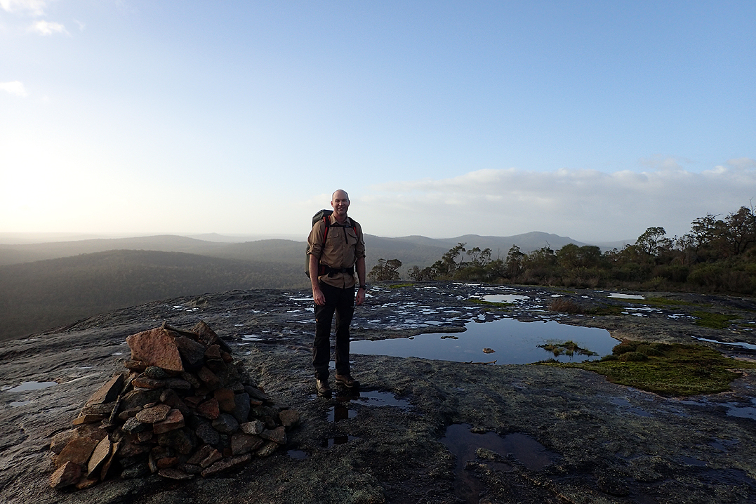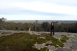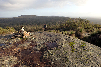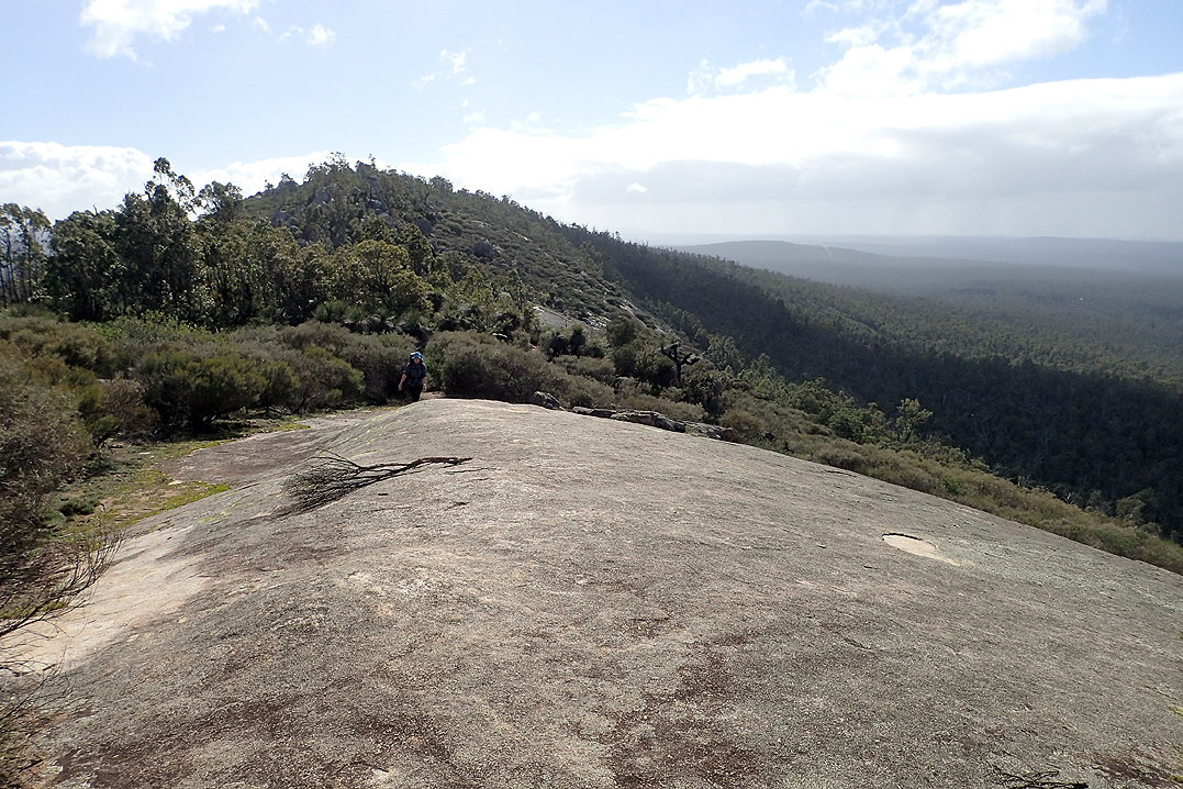 Today we said "Hello" to Mount Cooke and the boys, by which I mean Mount Vincent and Cuthbert. There had been fires in this area and then later prescribed burns to finish off what the fire had started. The day was probably the toughest climbing of the trip, with Mount Cooke being the most well-known, but as is so often the case, the other two were probably more difficult! It is always the ones you least expect. We love the expansive views of the forests. It is strange as you don’t automatically think of forests when you think of Western Australia, but as far as the eye could see, which was a long way over flat plains, trees were all you could see. We also love these large rock domes. After Mount Cooke you walk down the steep rock dome for quite a way.