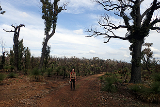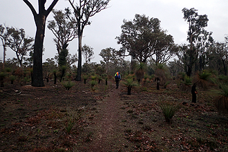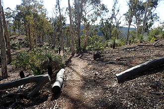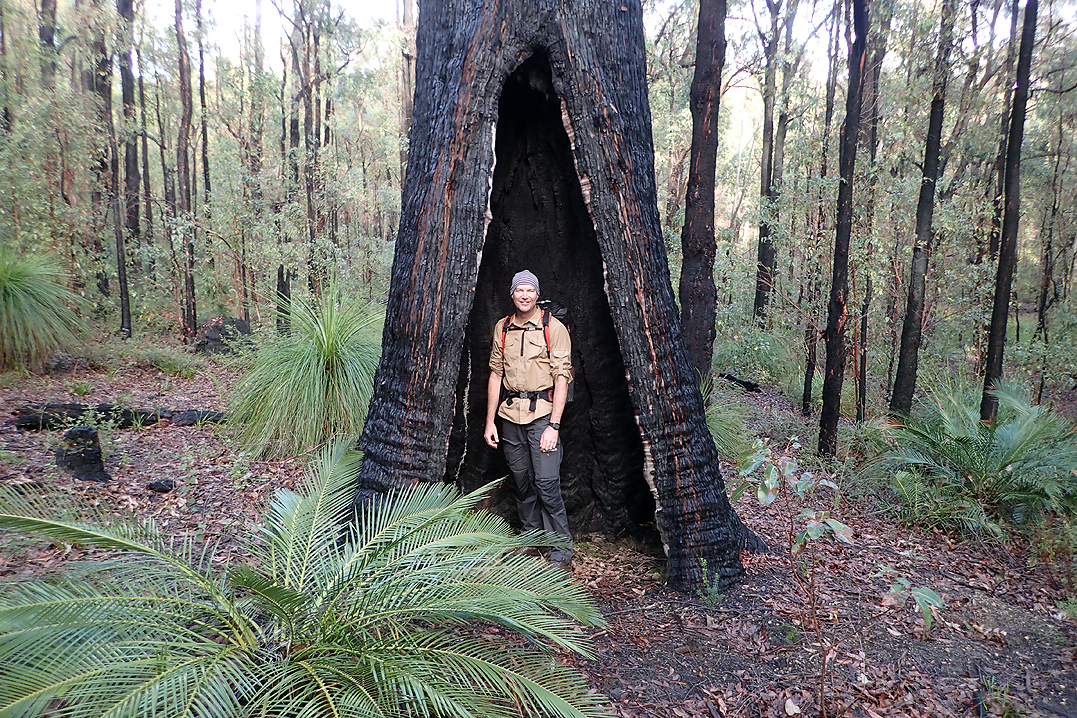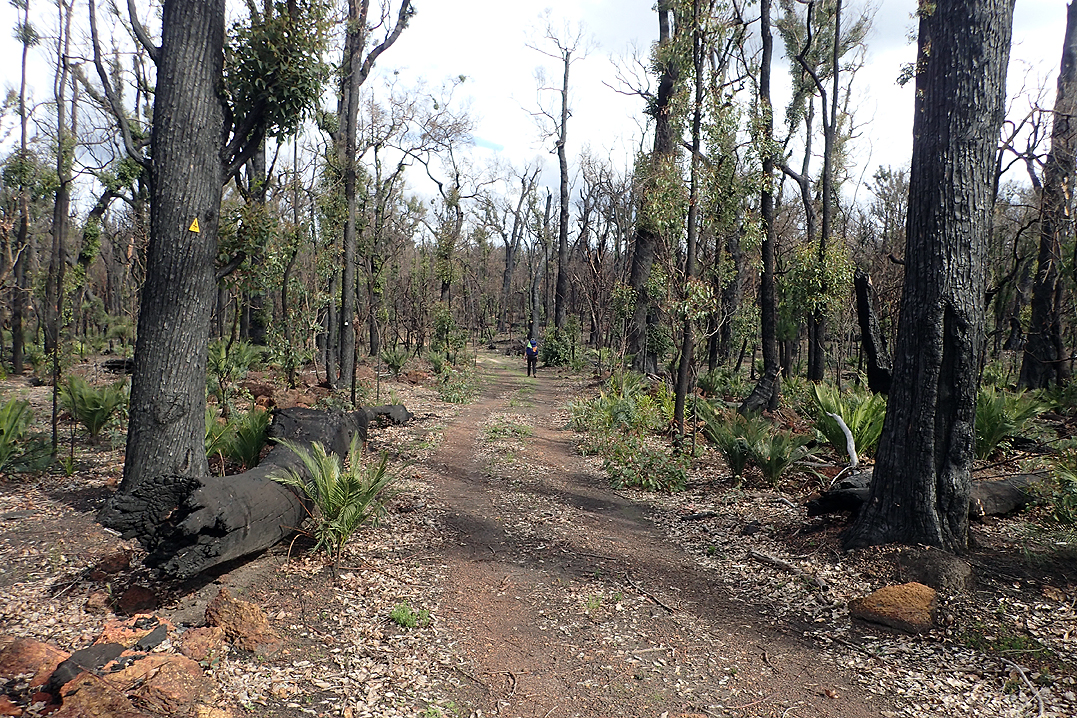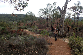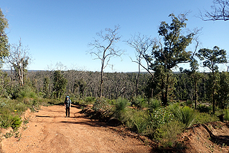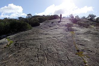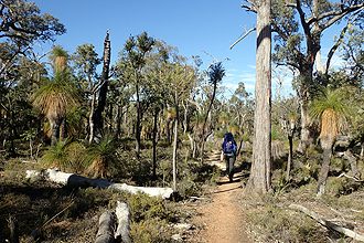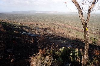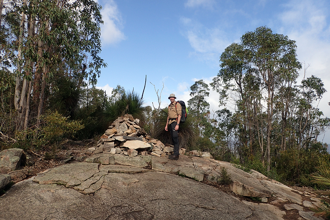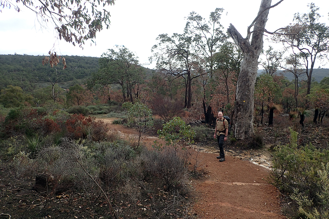 Today we said "Hello" to Mount Cooke and the boys, by which I mean Mount Vincent and Cuthbert. There had been fires in this area and then later prescribed burns to finish off what the fire had started. The day was probably the toughest climbing of the trip, with Mount Cooke being the most well-known, but as is so often the case, the other two were probably more difficult! It is always the ones you least expect. We love the expansive views of the forests. It is strange as you don’t automatically think of forests when you think of Western Australia, but as far as the eye could see, which was a long way over flat plains, trees were all you could see. We also love these large rock domes. After Mount Cooke you walk down the steep rock dome for quite a way.