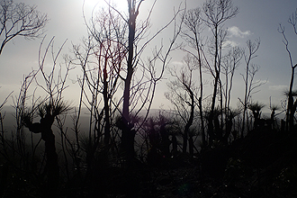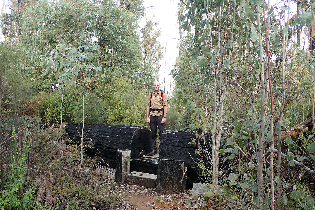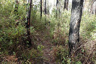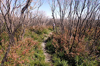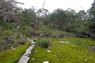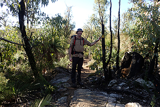 Before camping tonight we crossed a wide floodplain with a river flowing across the centre. The whole area was beautiful as it had been burnt out and the path was raised over the water. We camped just after this.