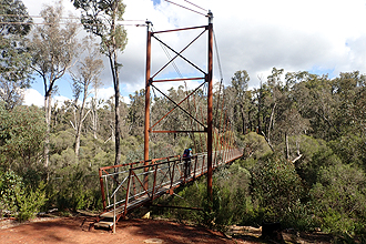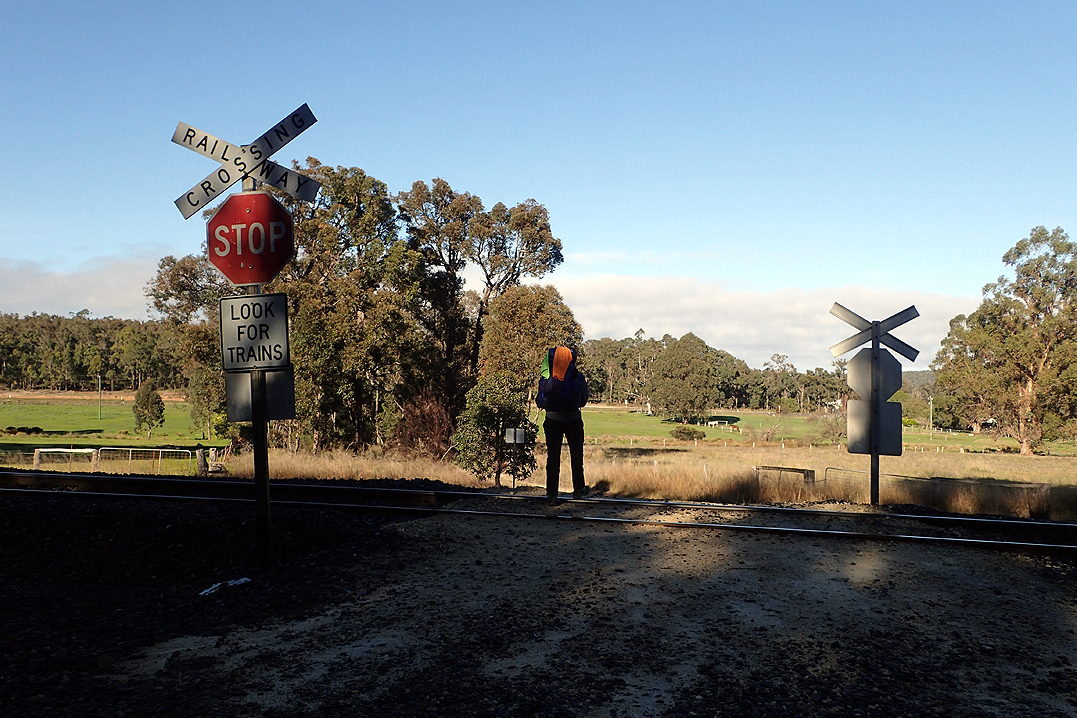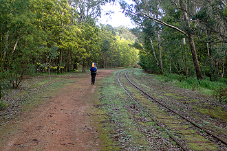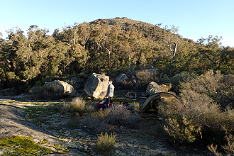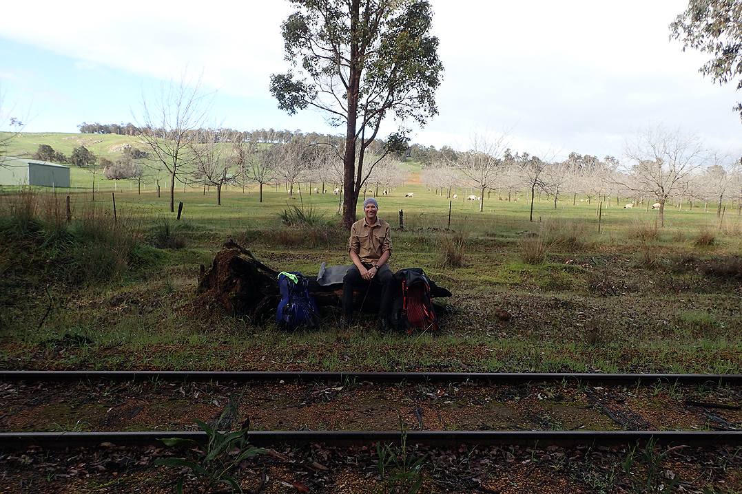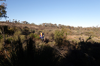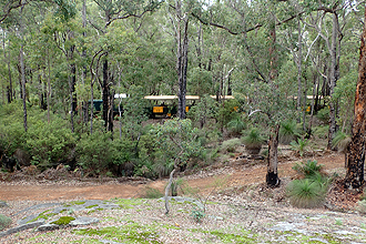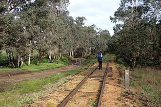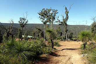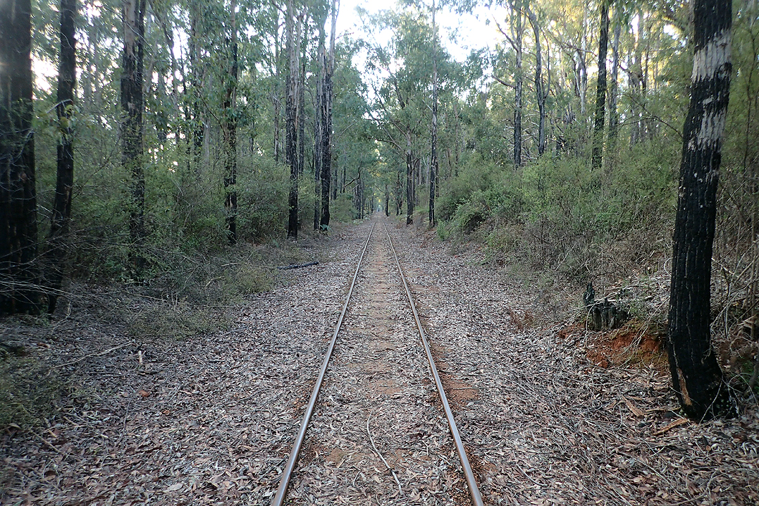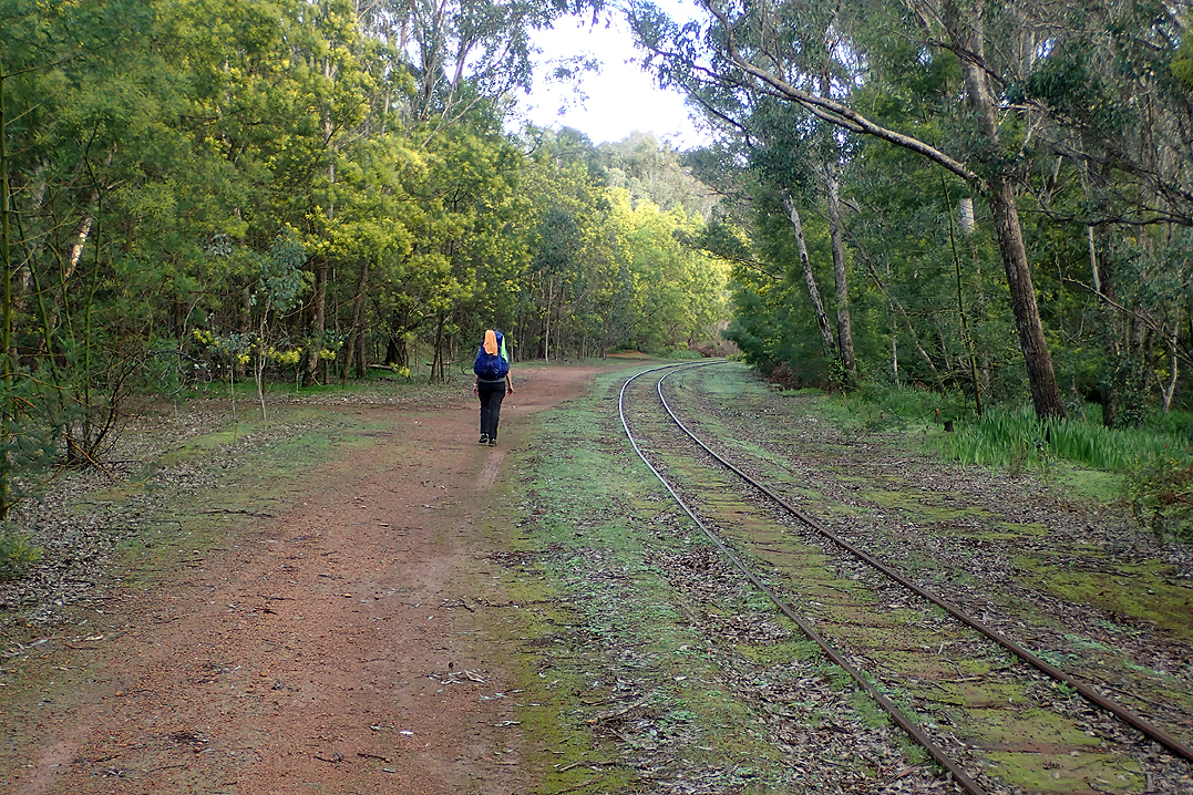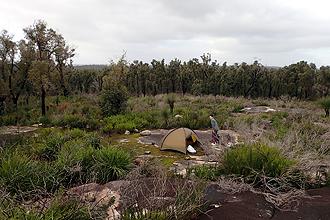 Our last day before Dwellingup. We were feeling impressed by our progress and were enjoying our lighter packs! As we would repeatedly find, by Day 5 your pack starts feeling much lighter as the fuel load reduces. We passed a scenic tourist railway towards the end of our day and camped high up on another dome rock again. We saw our first splendid fairy wren, brilliantly blue from head to toe. We were to see only two on the entire hike. We would often see another sort of wren, or robin which was black and white with a very brightly coloured orange-red breast.
