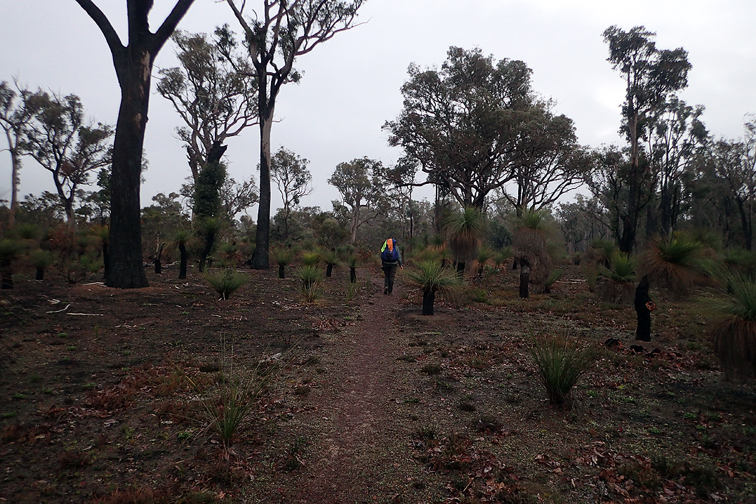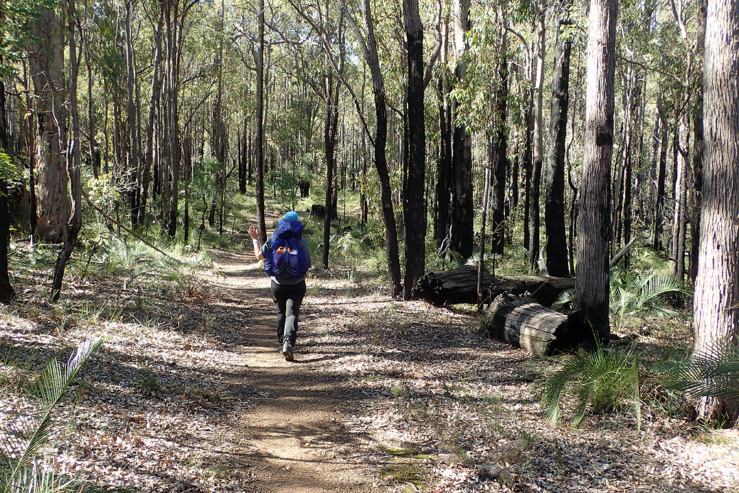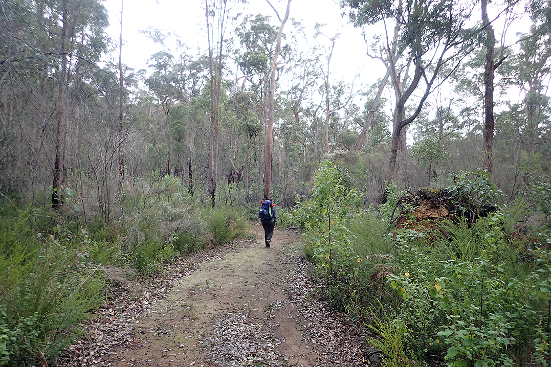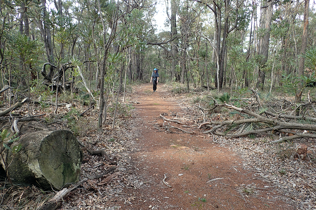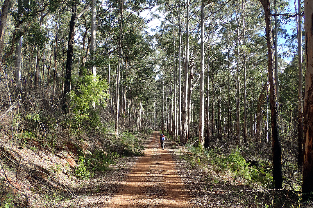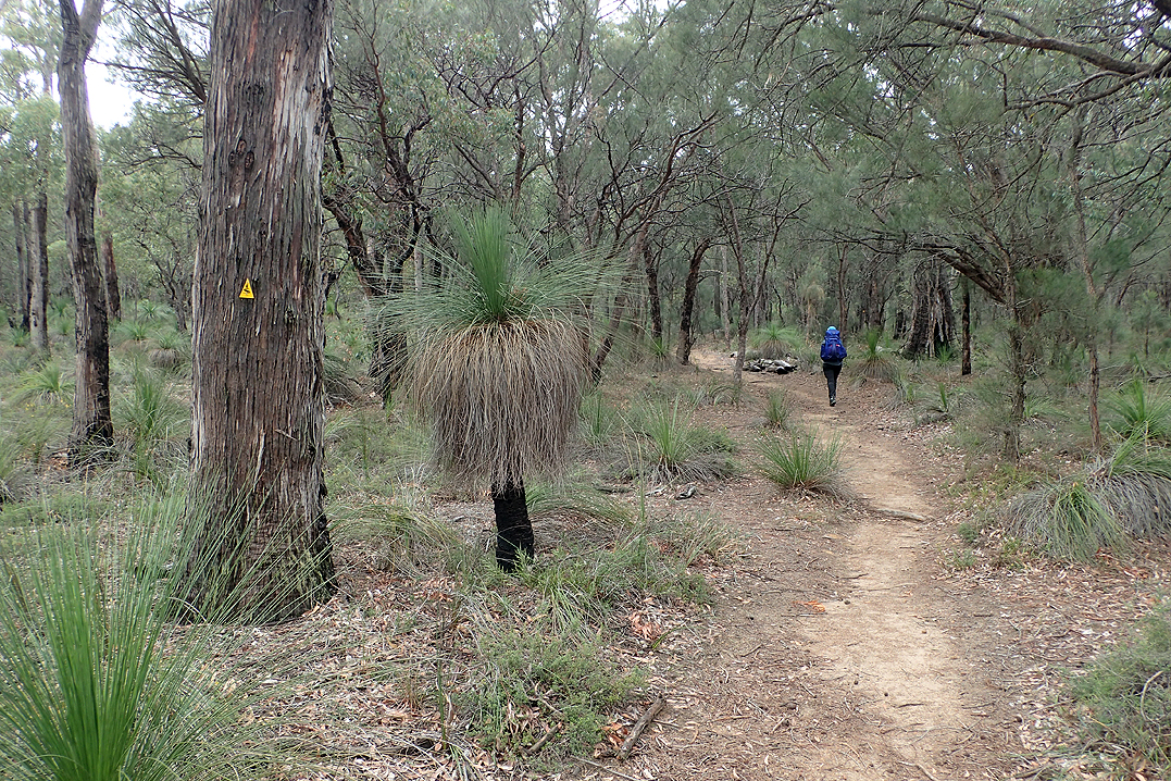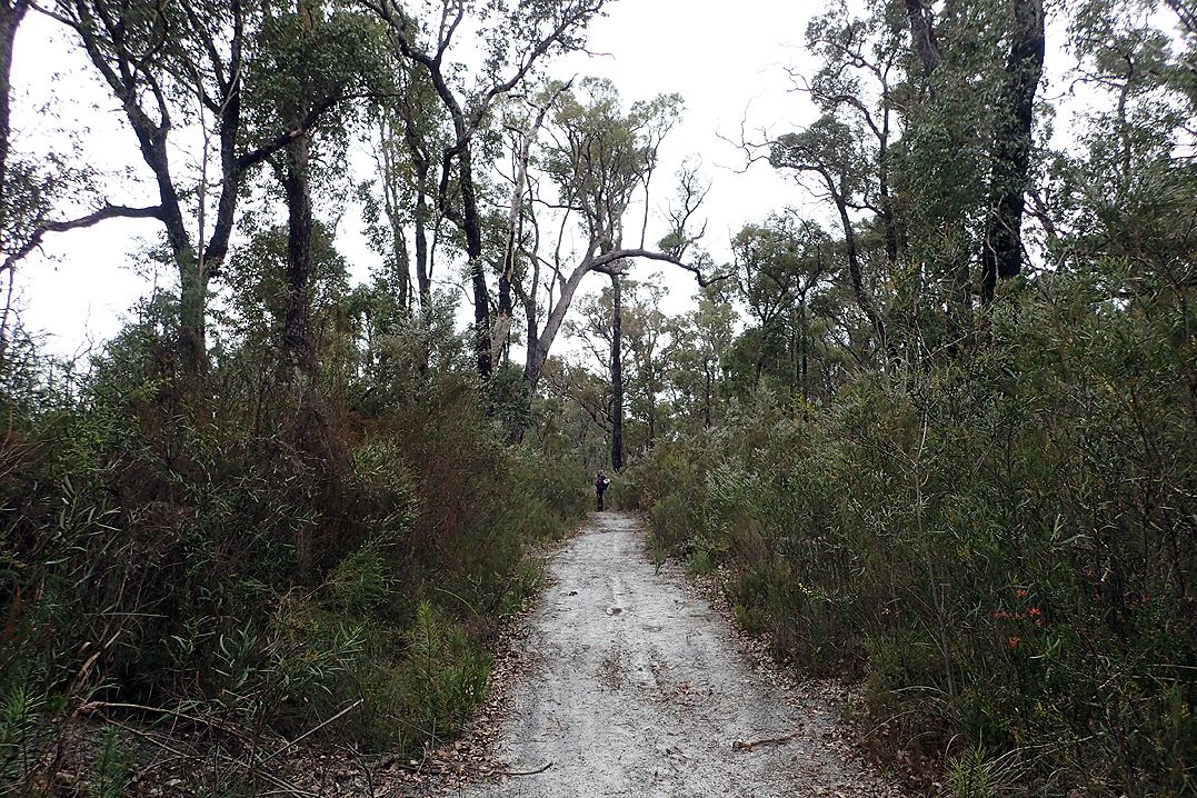 Beautiful walking today, much of it through virgin Jarrah forest and then later on along an old rail trail track. We met a Northbound E2E guy who warned us about the wet trail conditions further south and recommended accommodation in Ballingup. We found overall that the two things went hand in hand; someone told you horror stories about waist deep water, carrying your packs over your head, rats running over you while you slept and in the next breath told you all the B&B’s they had stayed in with hot showers and heaters.