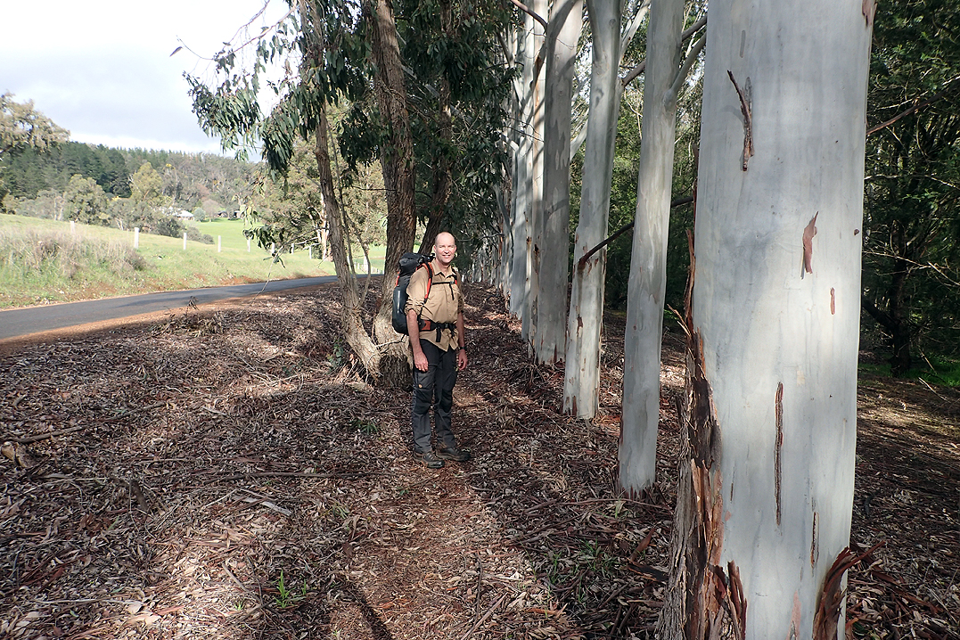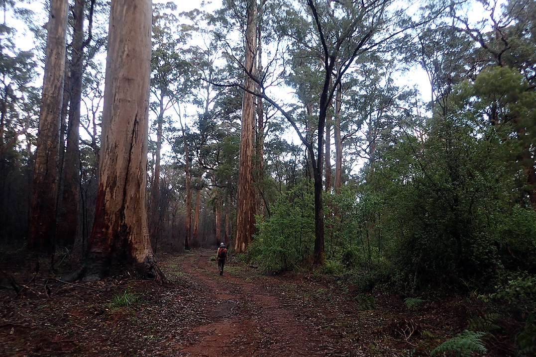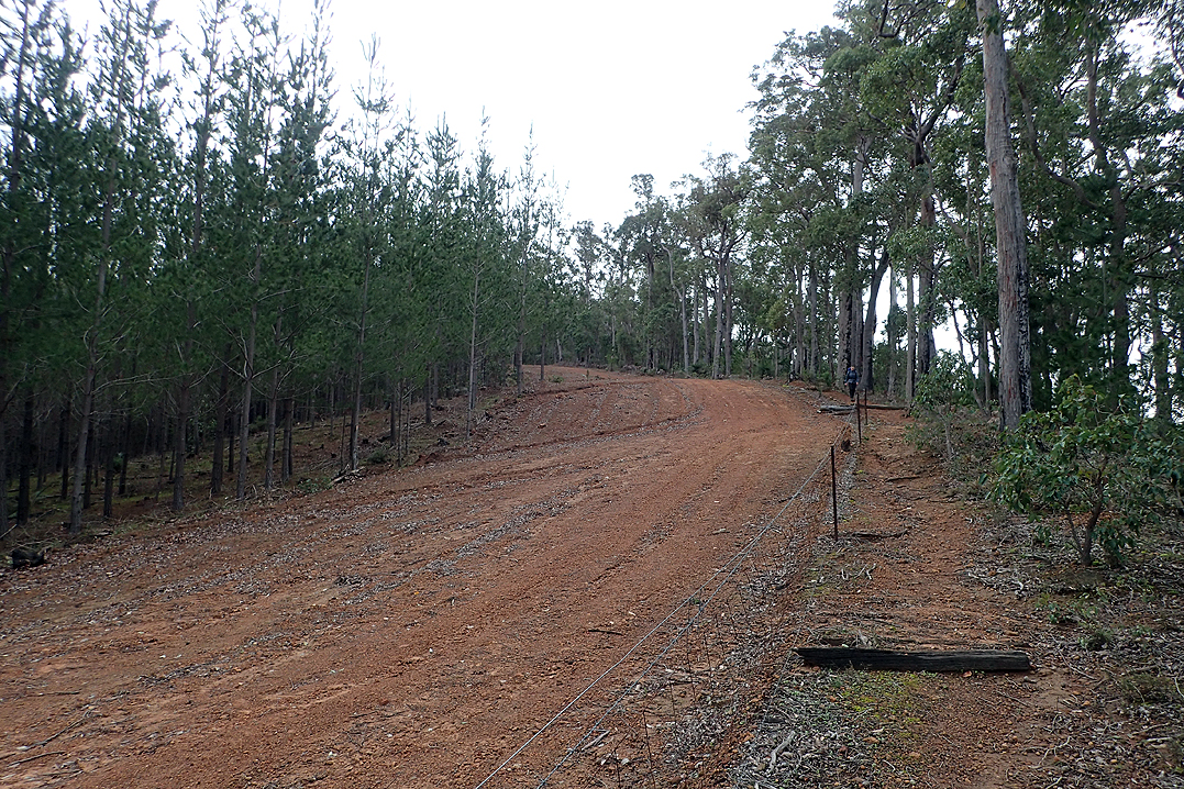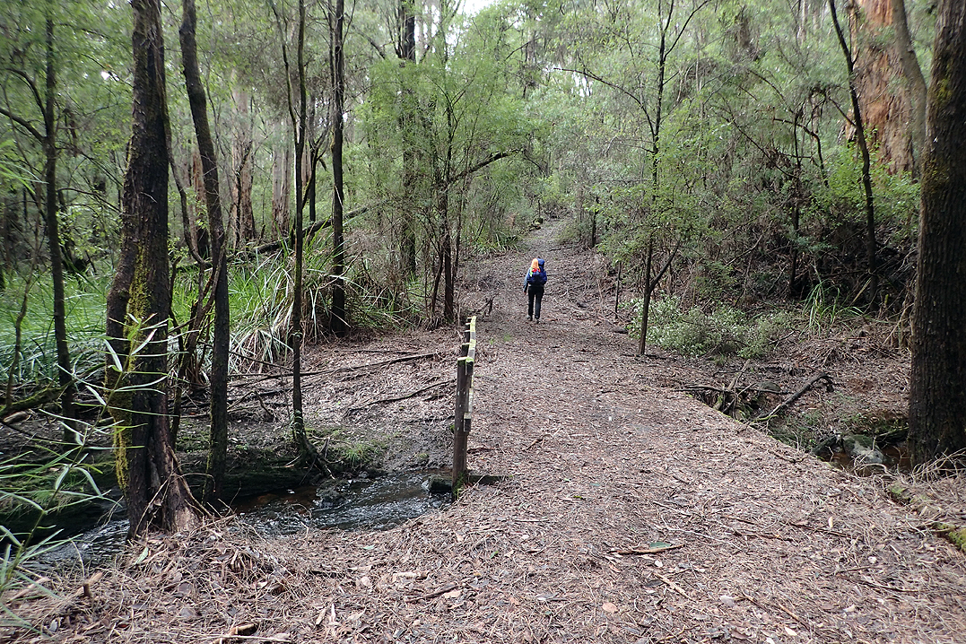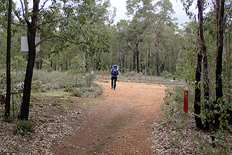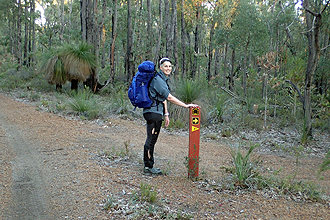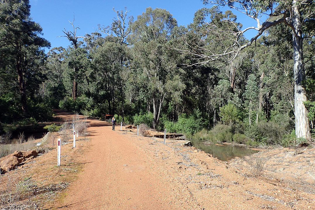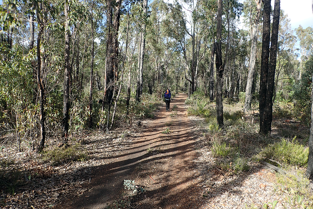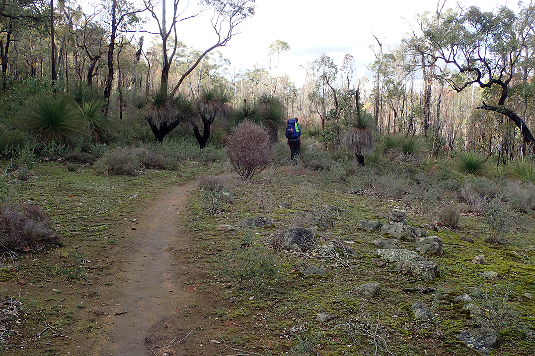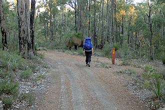 Beautiful walking today, much of it through virgin Jarrah forest and then later on along an old rail trail track. We met a Northbound E2E guy who warned us about the wet trail conditions further south and recommended accommodation in Ballingup. We found overall that the two things went hand in hand; someone told you horror stories about waist deep water, carrying your packs over your head, rats running over you while you slept and in the next breath told you all the B&B’s they had stayed in with hot showers and heaters.
