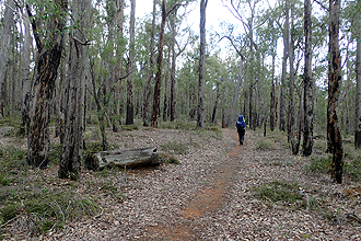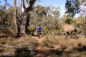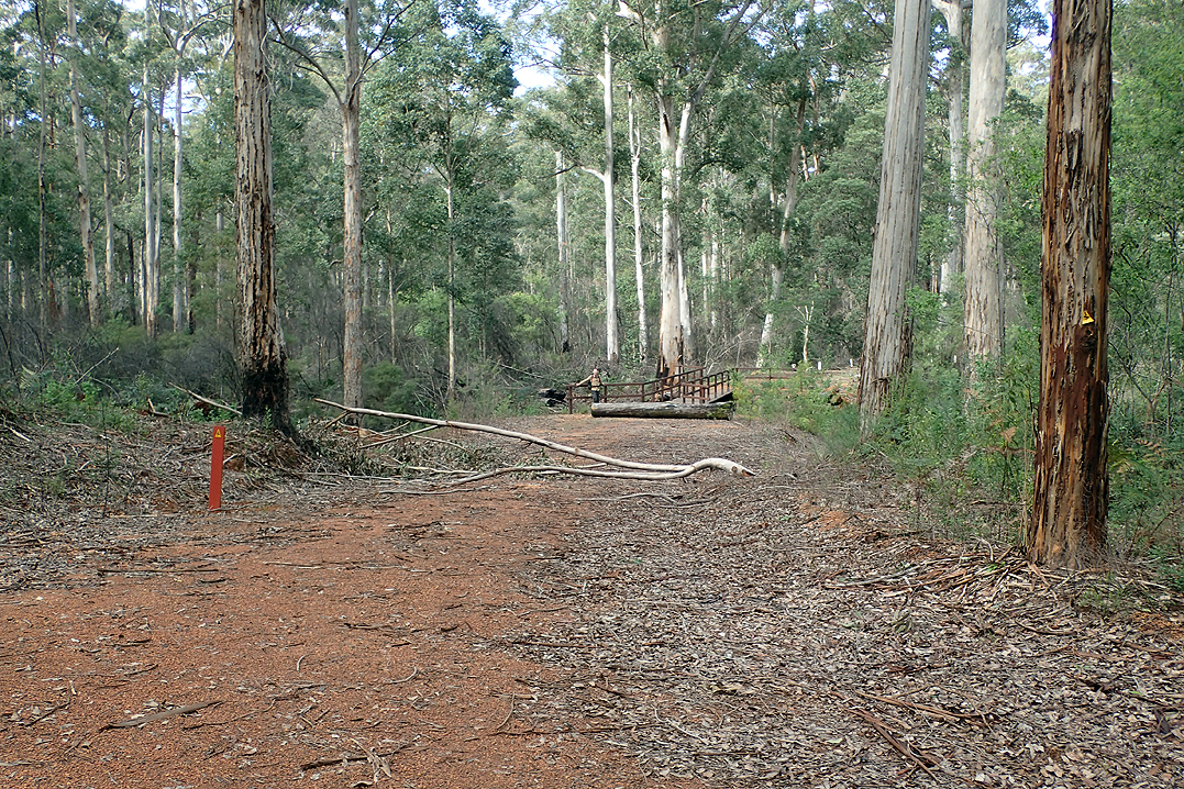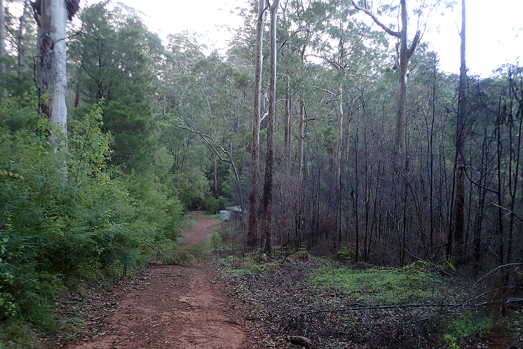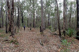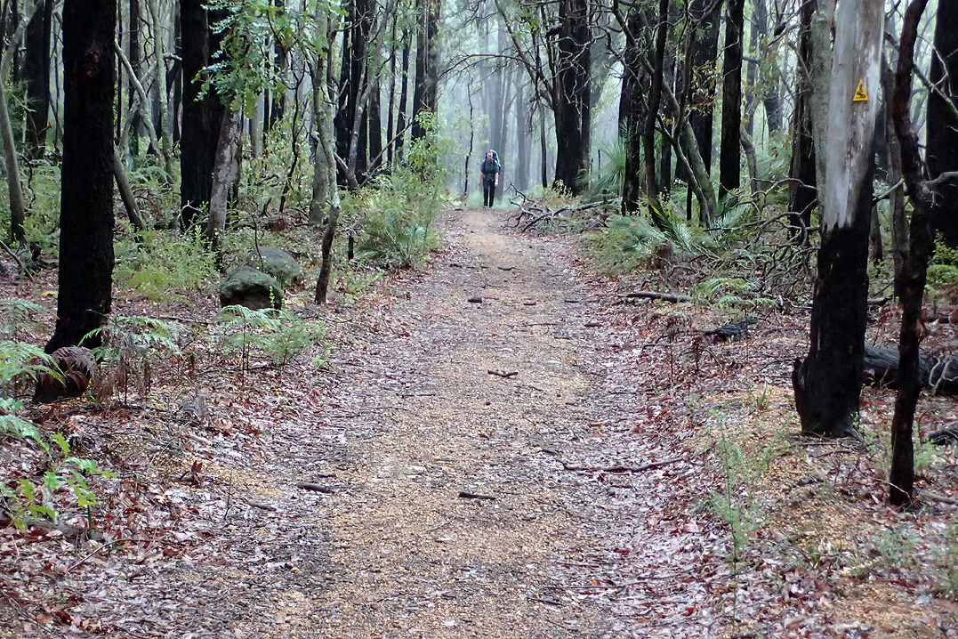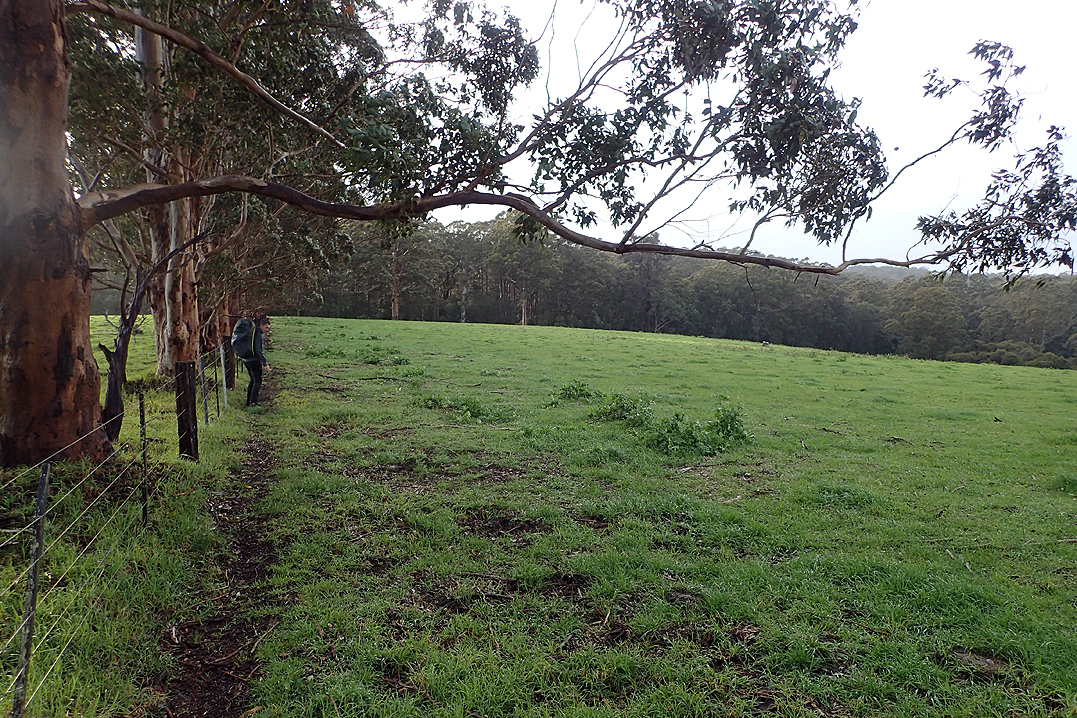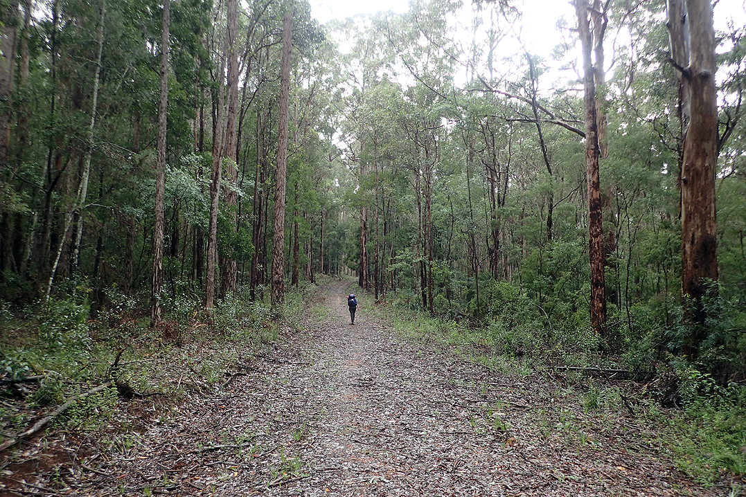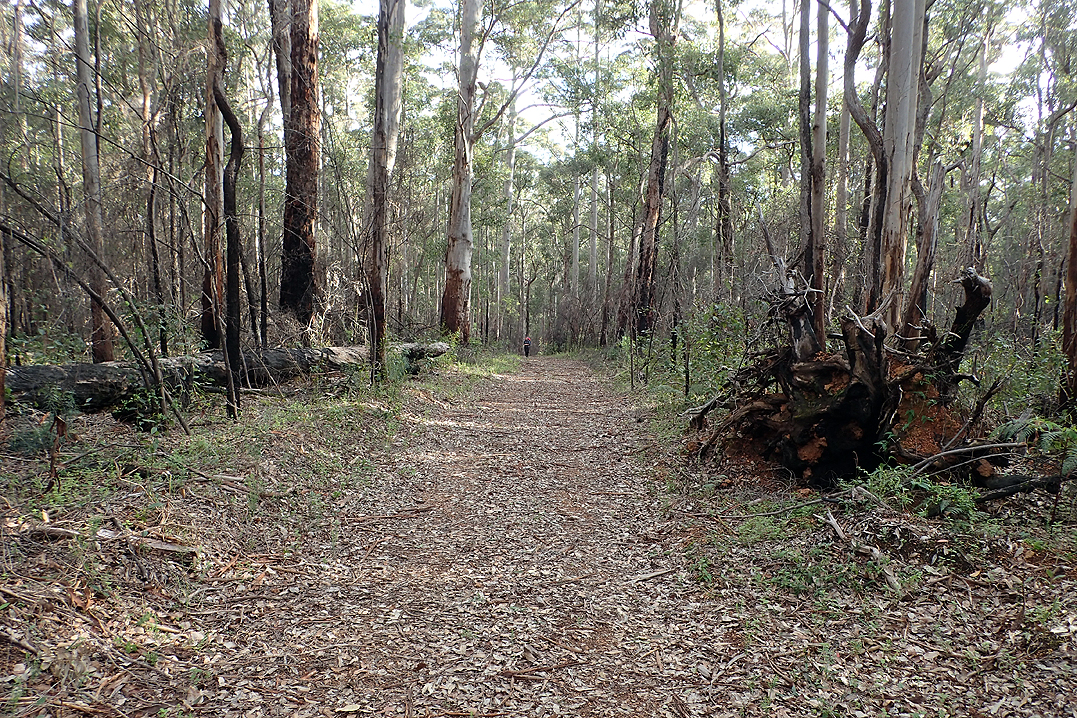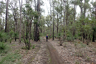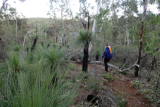 Beautiful walking today, much of it through virgin Jarrah forest and then later on along an old rail trail track. We met a Northbound E2E guy who warned us about the wet trail conditions further south and recommended accommodation in Ballingup. We found overall that the two things went hand in hand; someone told you horror stories about waist deep water, carrying your packs over your head, rats running over you while you slept and in the next breath told you all the B&B’s they had stayed in with hot showers and heaters.