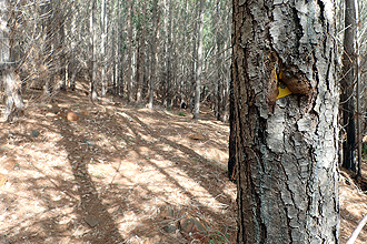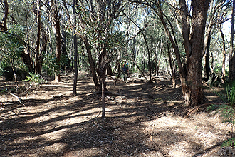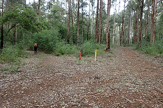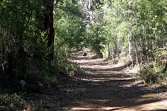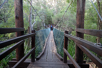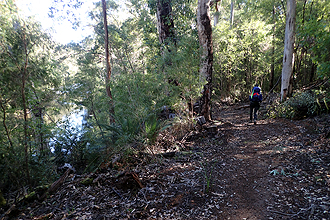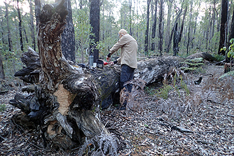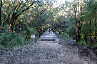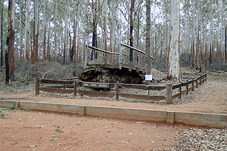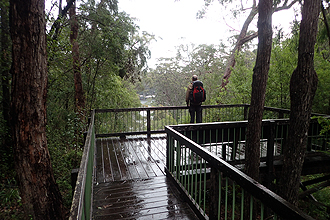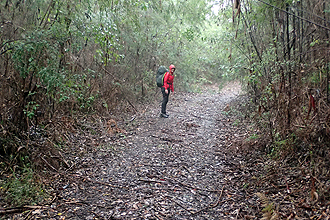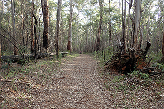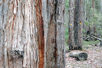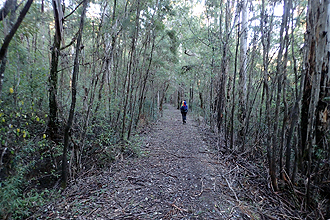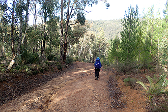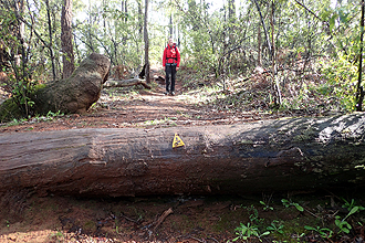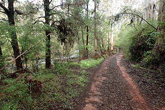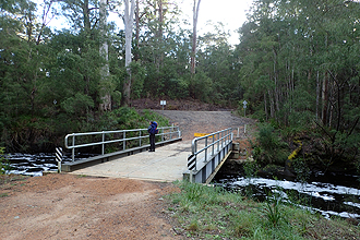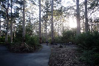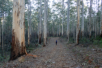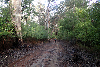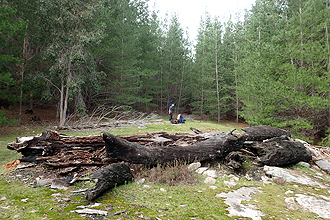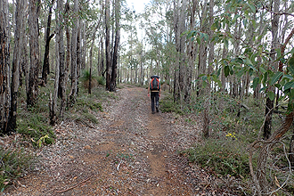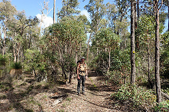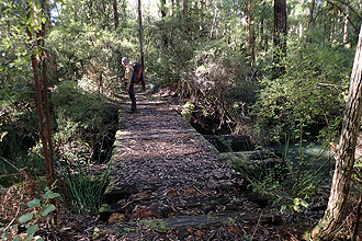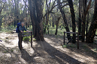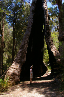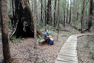 The first 3km of the walk was through Pemberton's side streets and headed in the direction of the Gloucester Tree. The Tree is 60 m high and was used as a fire lookout during its hey-day. Now, it's a tourist attraction where people can climb up the somewhat dodgy rungs and get a view of the surrounding land. We didn't the inclination or the time to carry out this feat, as we had about 17 km still to go to the Warren Hut. You don't get many views walking through the Karri Forest, but the environment is very pleasant. There are also no real hills to speak of. We saw a 1.5 metre long brown snake on the path, but it was in a great hurry to get out of the way, so no harm done. About 1 km before the Warren Hut, we decided to camp just off Collins Road, on the banks of the Warren River. This offered us all the water we needed and we fell asleep listening to water rushing over the ford. The total distance covered for the day was 19.0 km in 4h10 walking time.