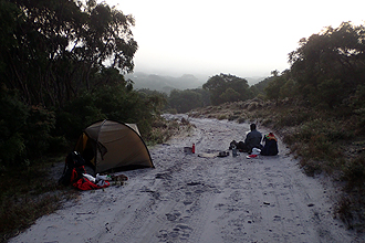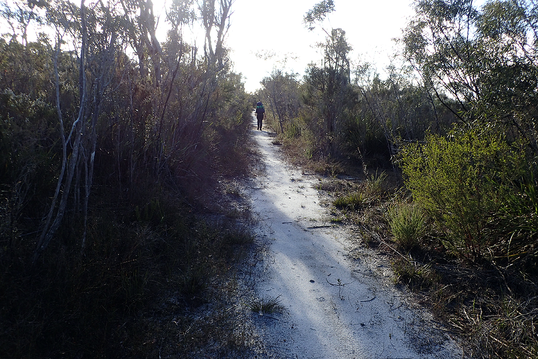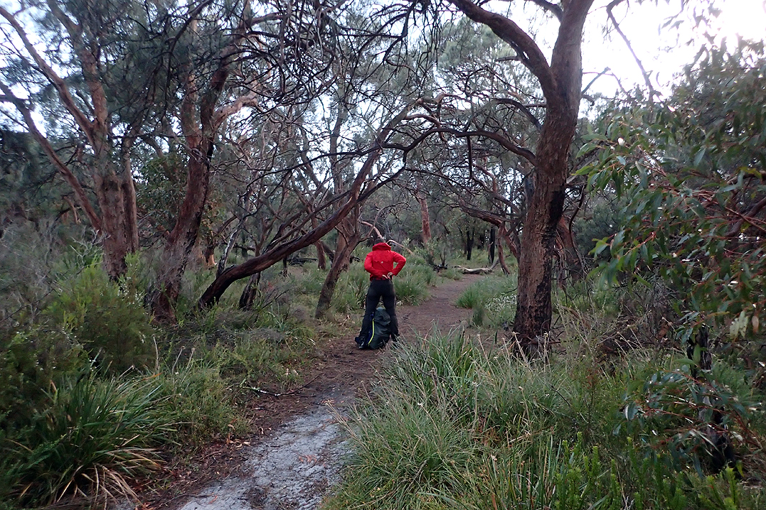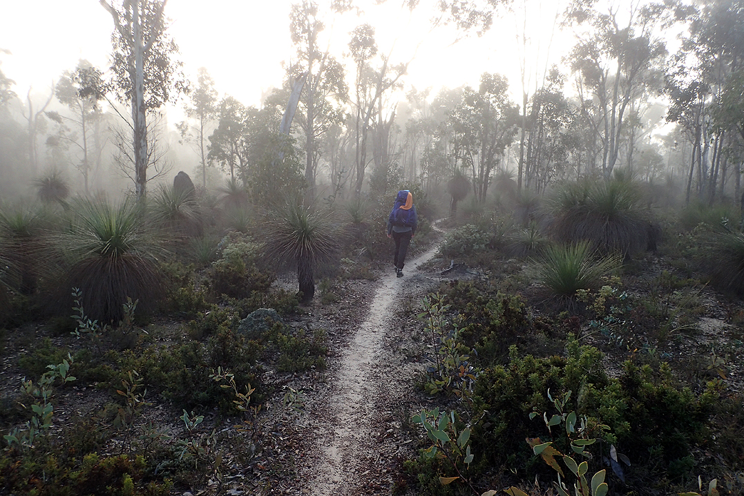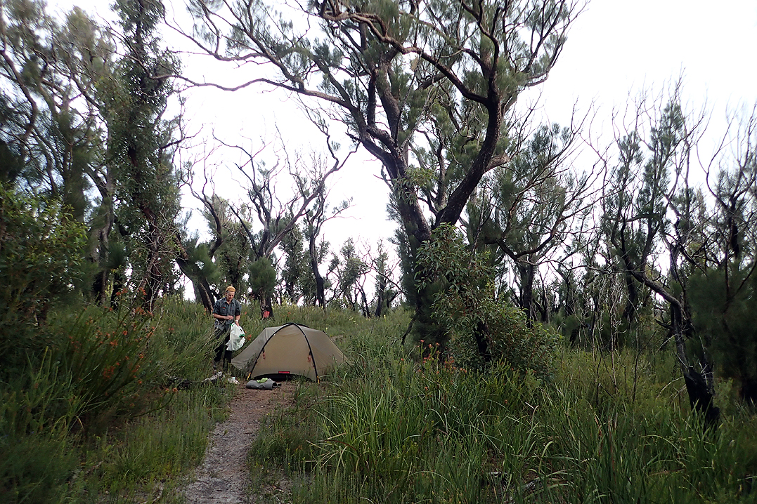 We had a super early start, the thought of fresh bread calling us I think. The camp spot was quite bushy with grass trees and the log we used last night was sort of behind the tent. Next thing I saw Mike walking up back to the trail with the stove, head torch on. "Hey - where are you off to?" I asked. Turns out he was so disorientated in the dark he was off to find the log in the complete opposite direction! In the end it took us 10min to find the damn log which was only 10m away.