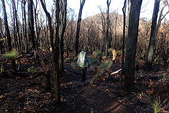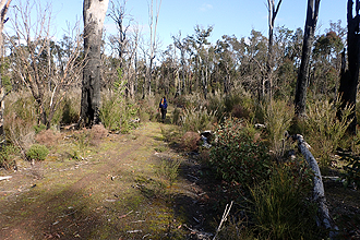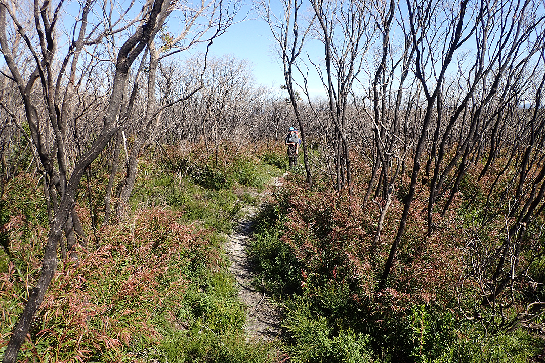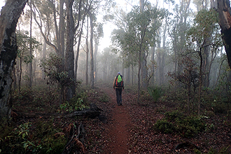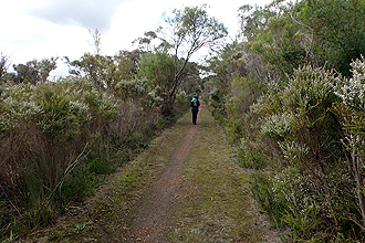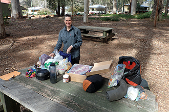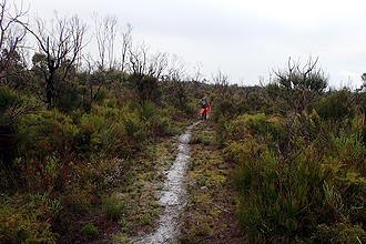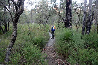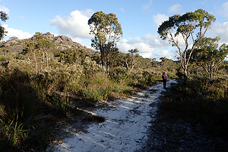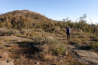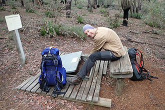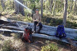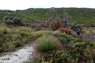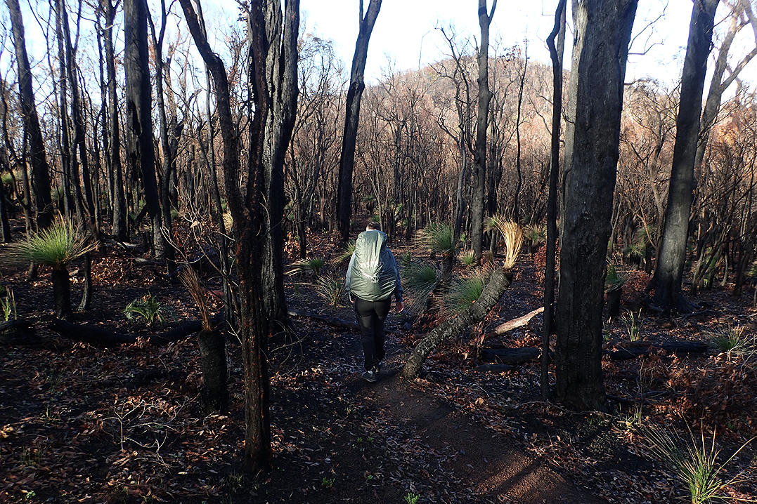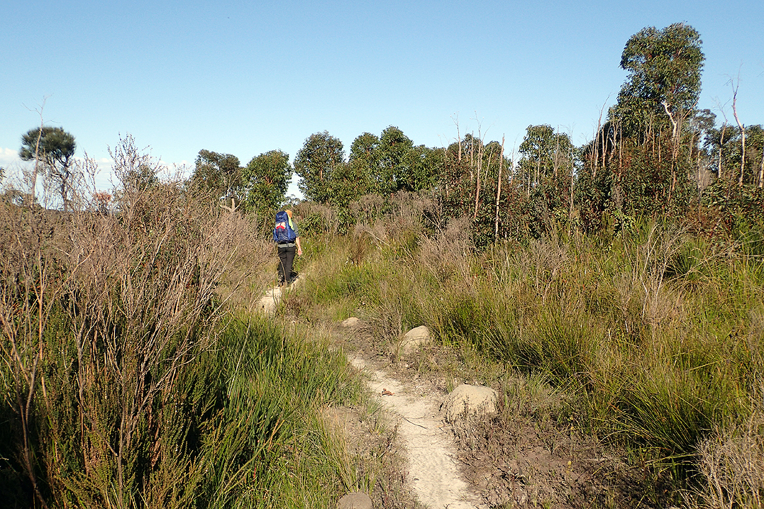 We had a super early start, the thought of fresh bread calling us I think. The camp spot was quite bushy with grass trees and the log we used last night was sort of behind the tent. Next thing I saw Mike walking up back to the trail with the stove, head torch on. "Hey - where are you off to?" I asked. Turns out he was so disorientated in the dark he was off to find the log in the complete opposite direction! In the end it took us 10min to find the damn log which was only 10m away.