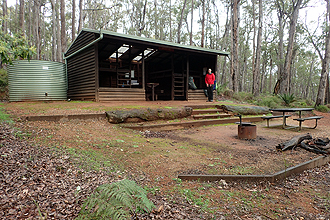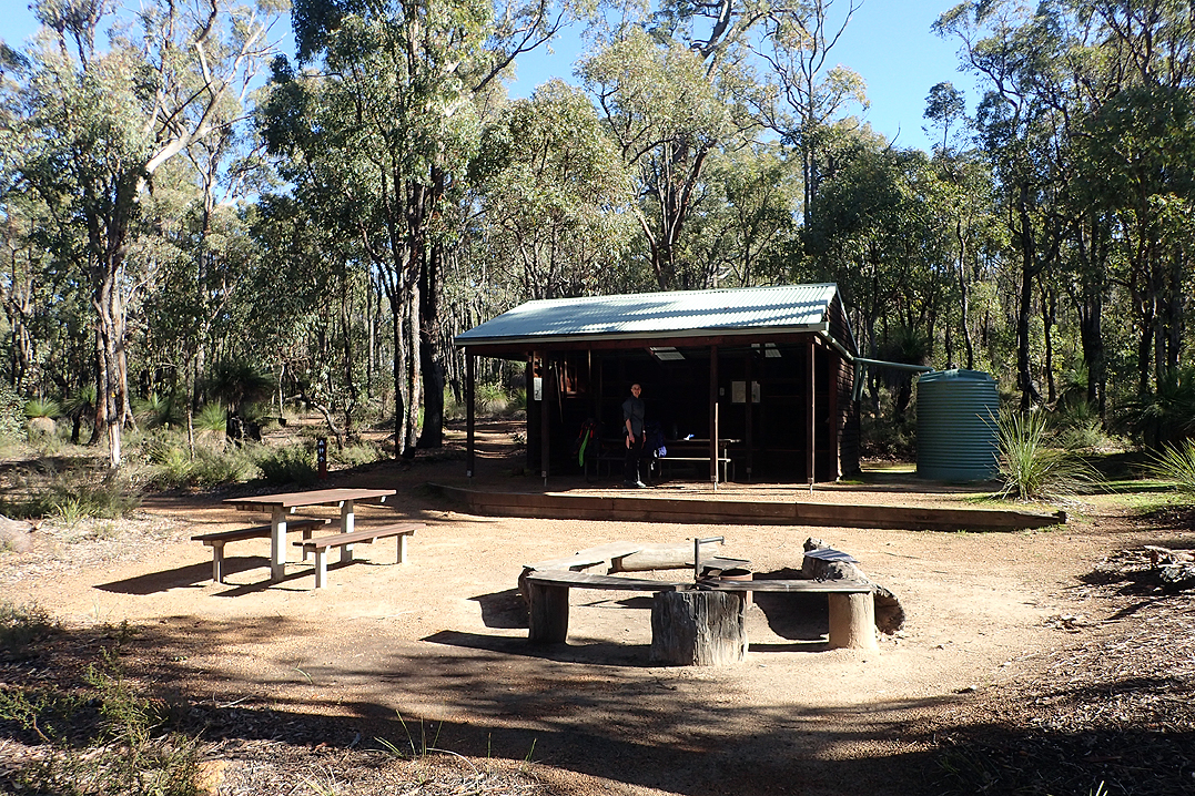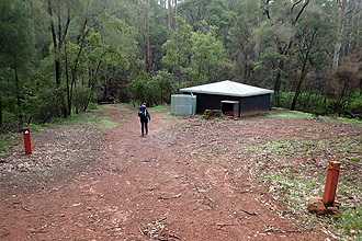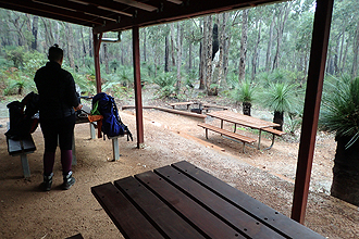 We ate our cheese and tomato buns (another regular treat in any track town – no hamburgers or ice creams for us!) and walked out the other side of Dwellingup to the next hut. We found we were happier passing through the villages on the track in most cases instead of staying there. There was heavy rain overnight again, our tent performed well. Cannot complain about overnight rain!