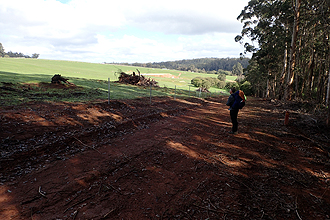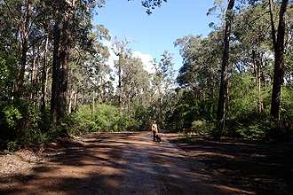 We were so excited to get into Donnelly River Village that we really sped along and then it was pretty disappointing. After Ballingup we were expecting another nice place with a good spot to sit and eat and so on. It is a pretty interesting place. It is an historic timber mill site and we had a food parcel delivered to the general store. The thing which made a bad impression was the crowd of tame kangaroos that made a beeline for you and your hiking pack and sort of sniffed at you to get food and then once you evaded that lot to go try to eat your lunch at the fairly windswept picnic area the horrible emu’s with their big beaks were all over you wanting to peck at you. We packed up and left as soon as possible.