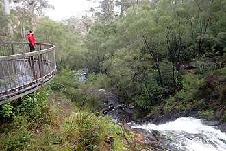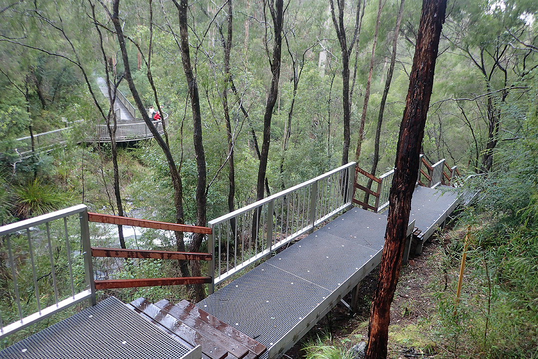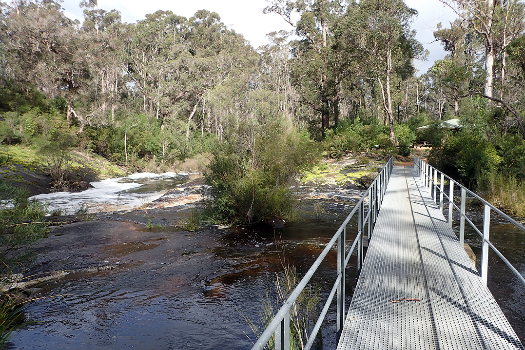 The day was wet and green and steep. The trail wound up and down following the Donnelly River all the way. The river itself was fast flowing and full. We were amazed at the various crossings of the river - one in particular via a MASSIVE felled tree with the one side sliced off to make a bridge. The whole thing just rested on each end bridging the river, complete with hand railings (this is Australia after all!).
