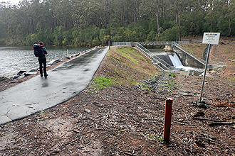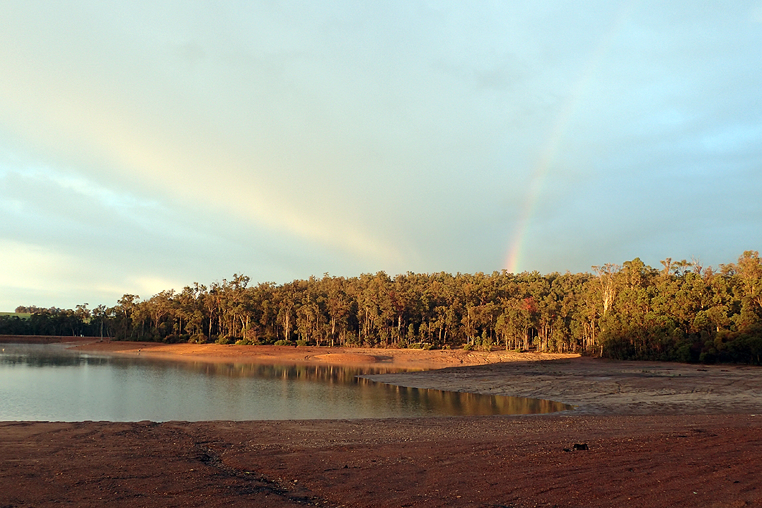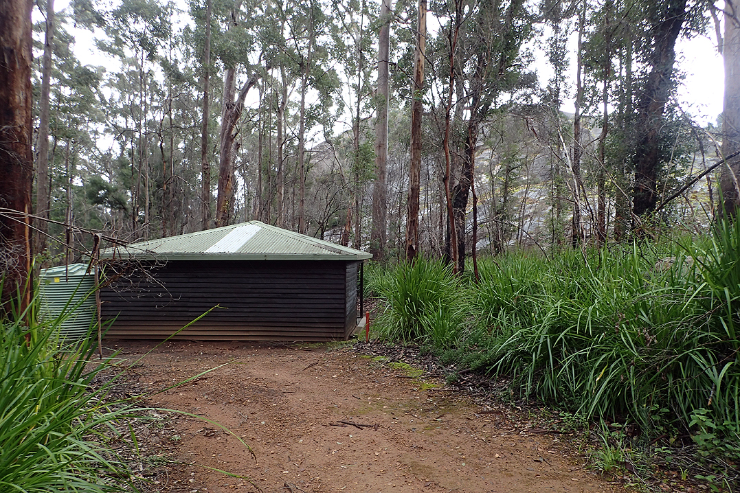 Just after the uphill climb out of Collie we met David and Krishna, whose overseas travel plans had like ours this year been cancelled, they were hiking Collie to Pemberton. We caught up with them again at Yabberup Hut. This is just after the Wellington Dam Spur Trail. There is a group hiking shelter at that point. They were overnighting at Yabberup, as were the three girls from Freo who’s log book entries we had been reading. We found that most E2E’ers would have a day off in each track town or village, which meant that over the 6 weeks on the trail, we caught and passed many of them. It was nice chatting to Krishna and David. We pressed on to Glen Mervyn Dam and experienced our first cloud burst while walking. The dam is set up for informal camping with a toilet. Just a note about toilets. All the way from Kalamunda to beyond Northcliffe there was almost without fail toilet paper available, which amazed us in a bush toilet. They were always in great condition and cleaned regularly. The one at the dam was no exception, even though not a Bib toilet.