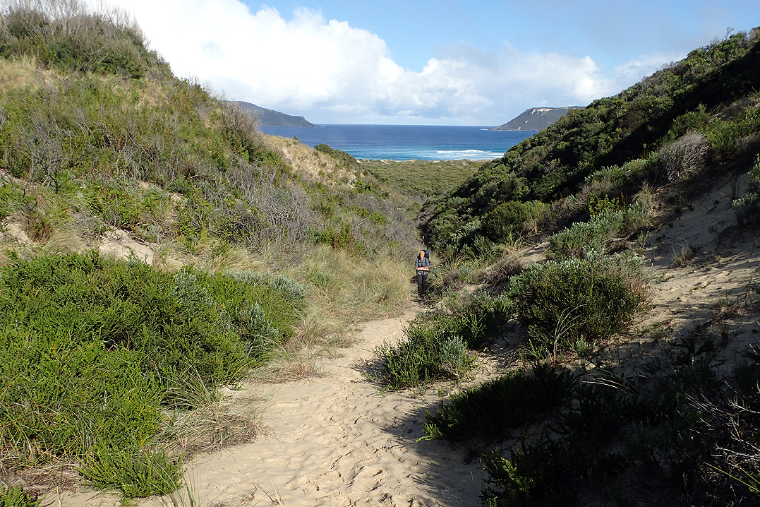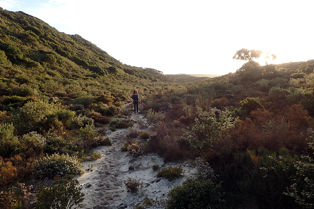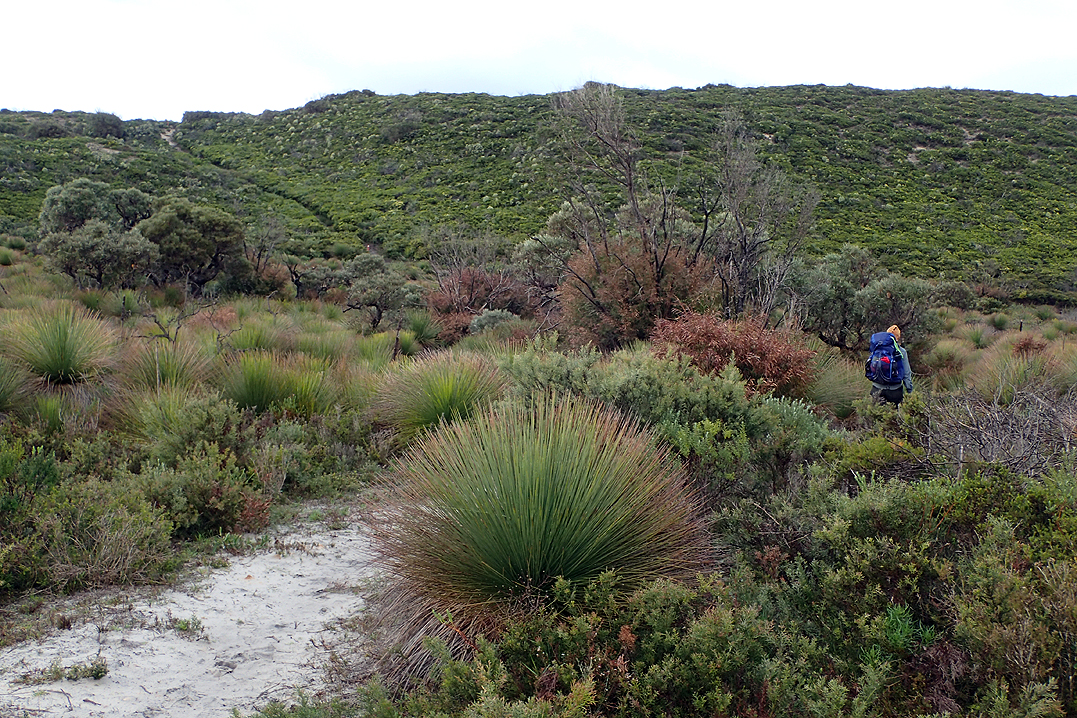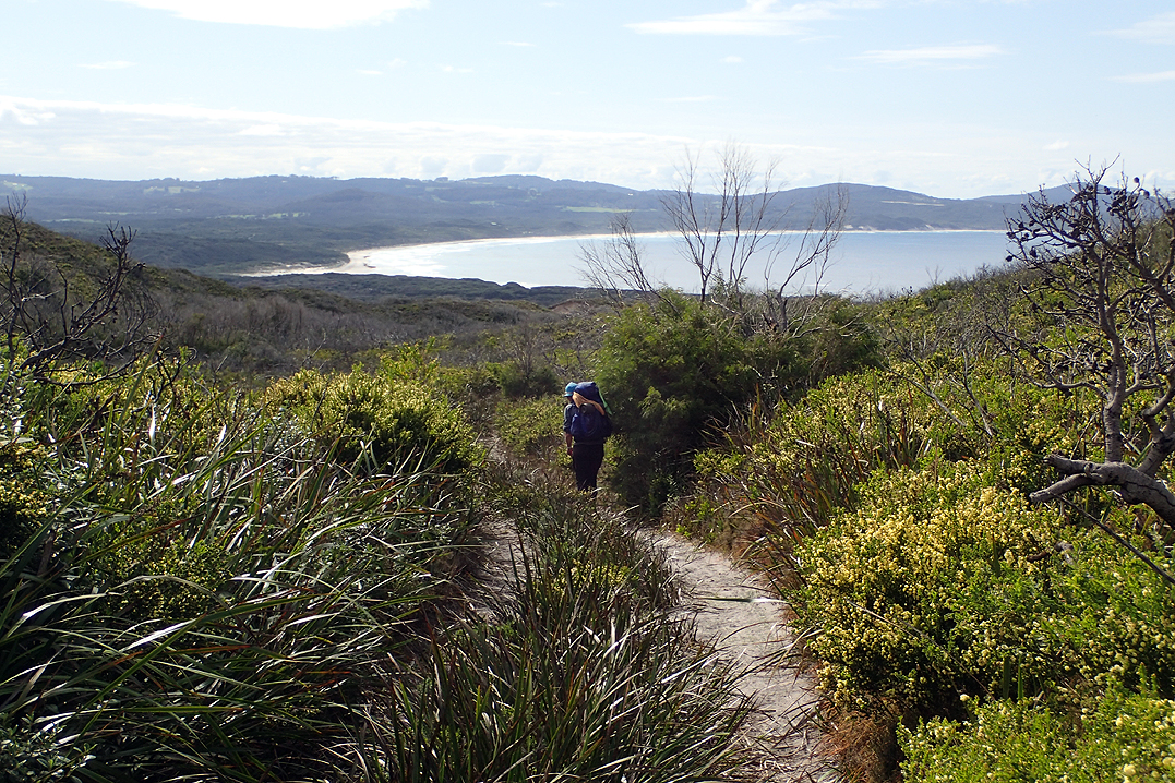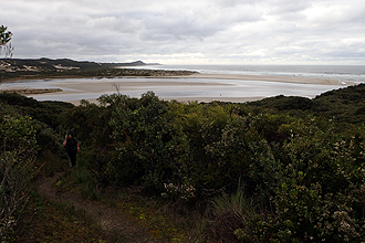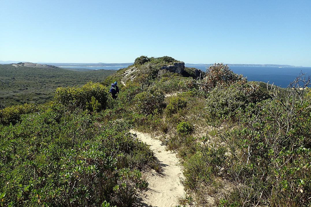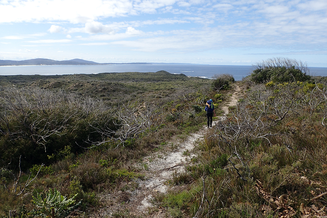 The day before we had decided that in order to respect the integrity of the undertaking we would walk around the Wilson Inlet. This would add on about 30km and one day’s walk, but we had allowed for it. So we had a job to do and this traipsing up and over a hill for no real value was a bit frustrating.