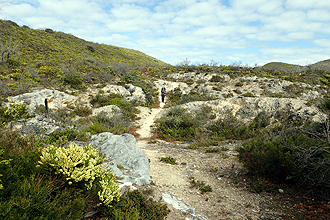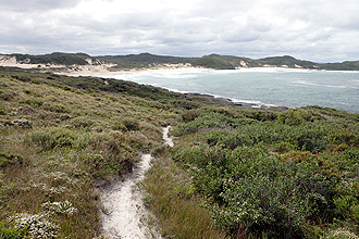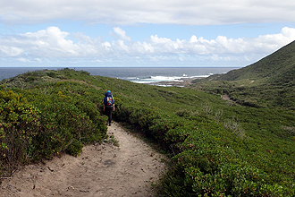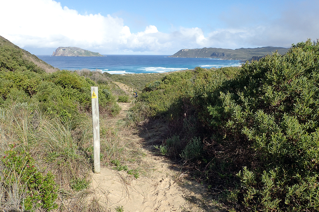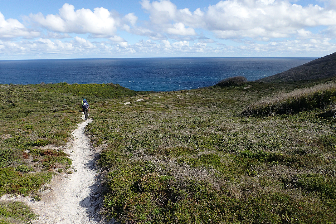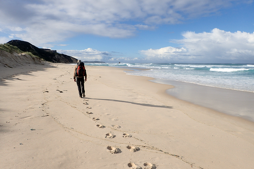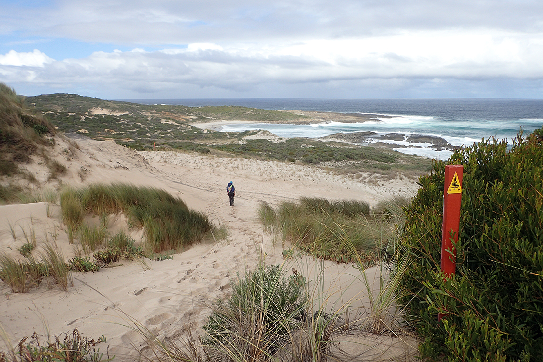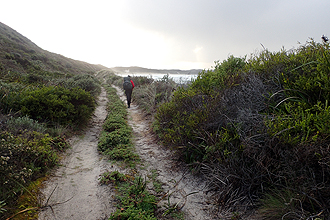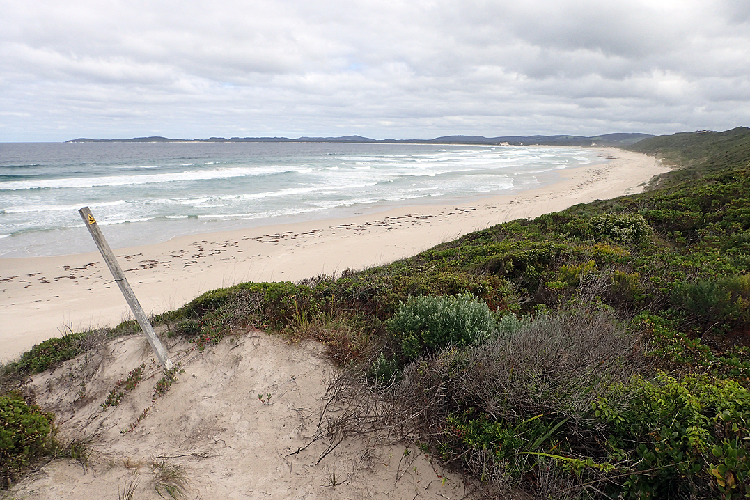 The day before we had decided that in order to respect the integrity of the undertaking we would walk around the Wilson Inlet. This would add on about 30km and one day’s walk, but we had allowed for it. So we had a job to do and this traipsing up and over a hill for no real value was a bit frustrating.