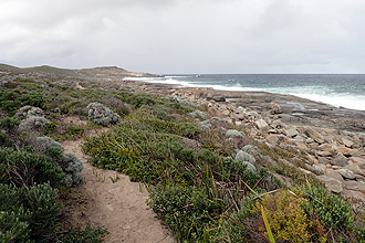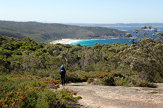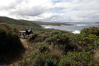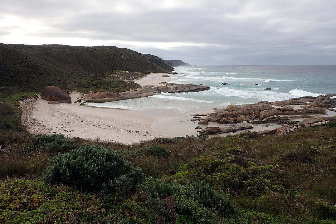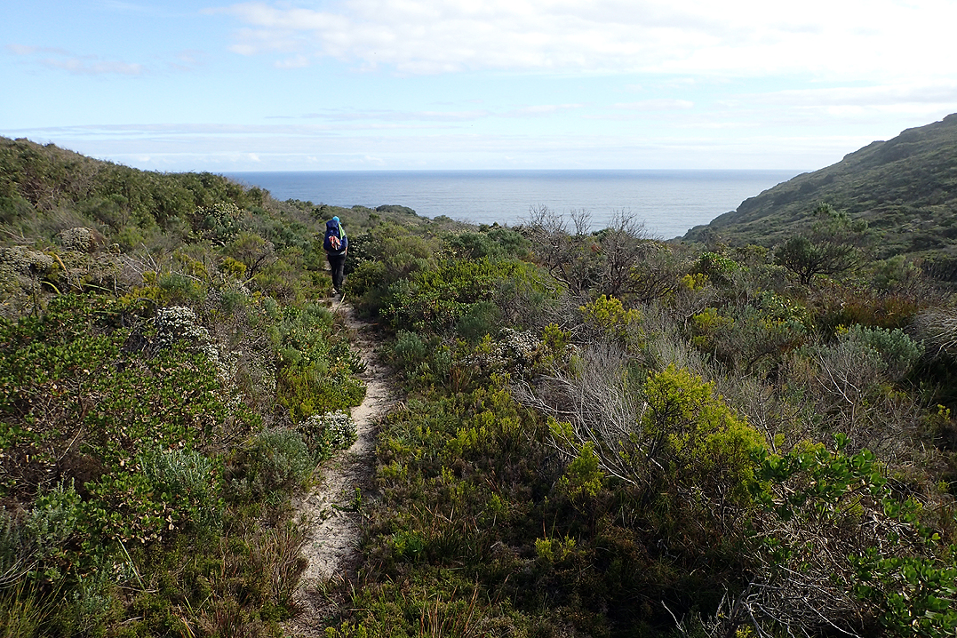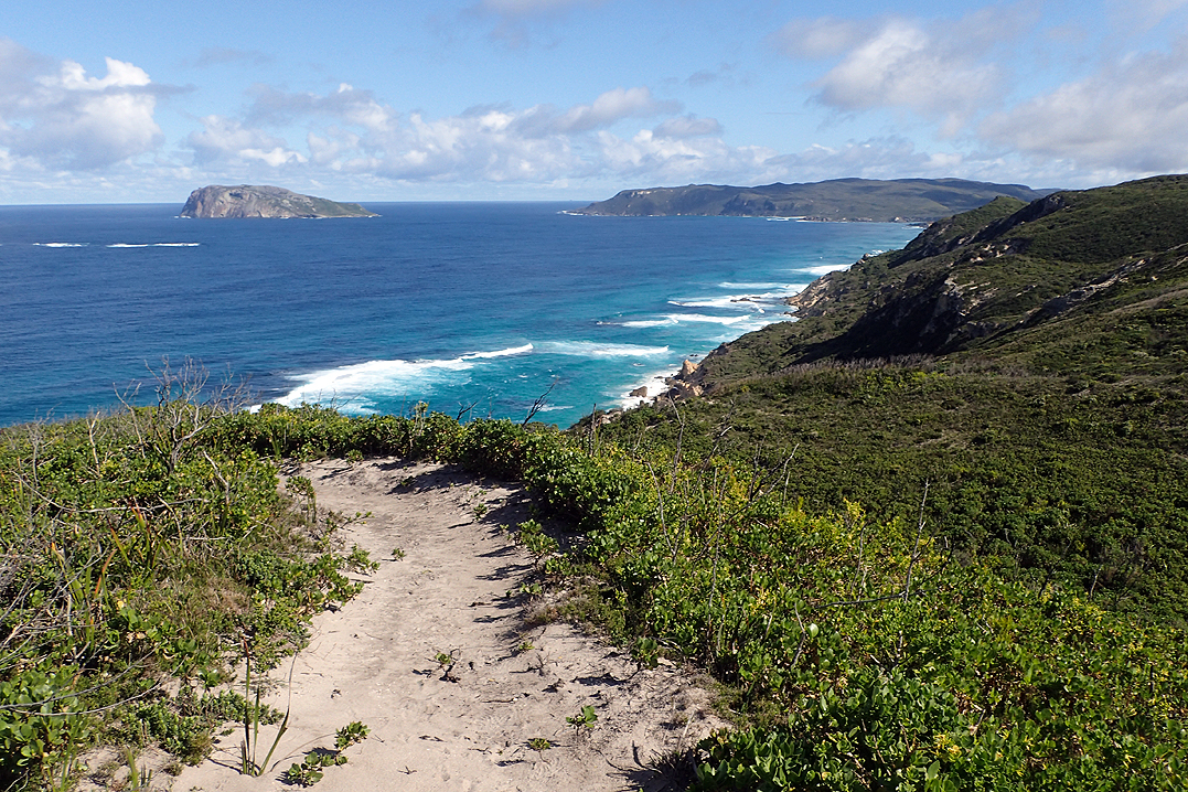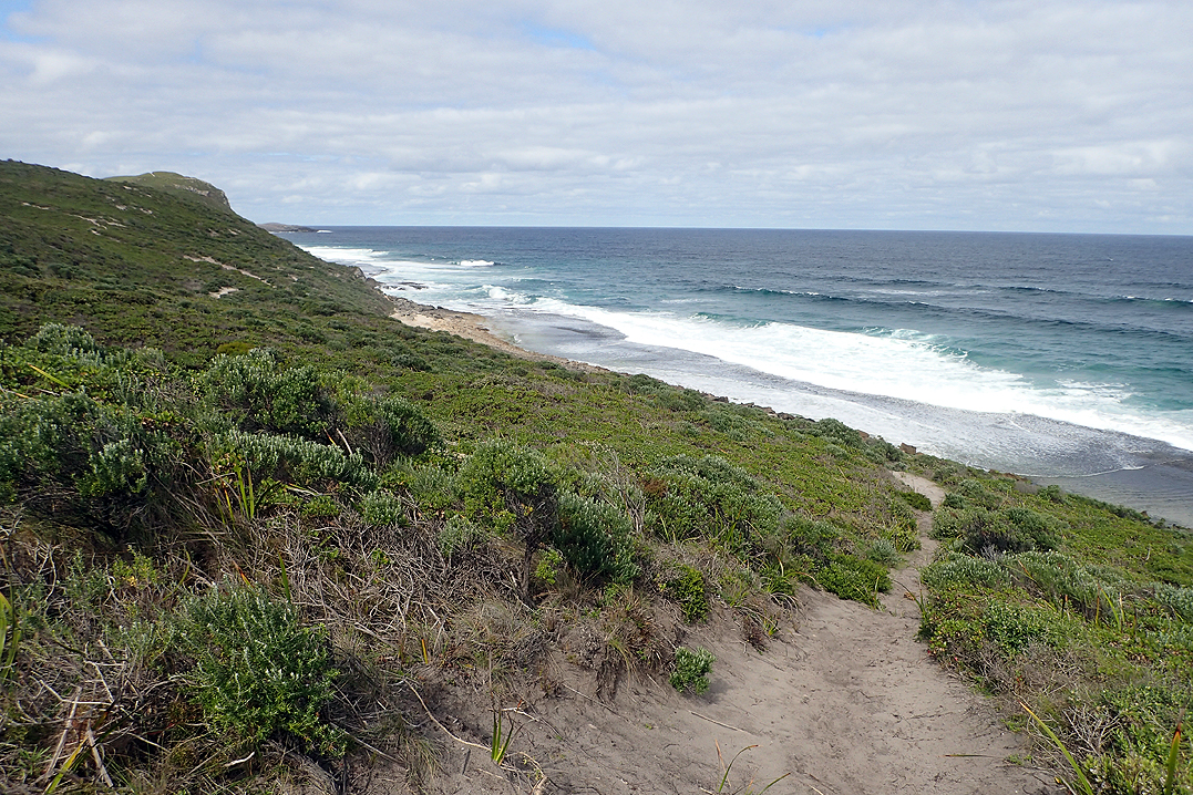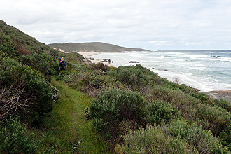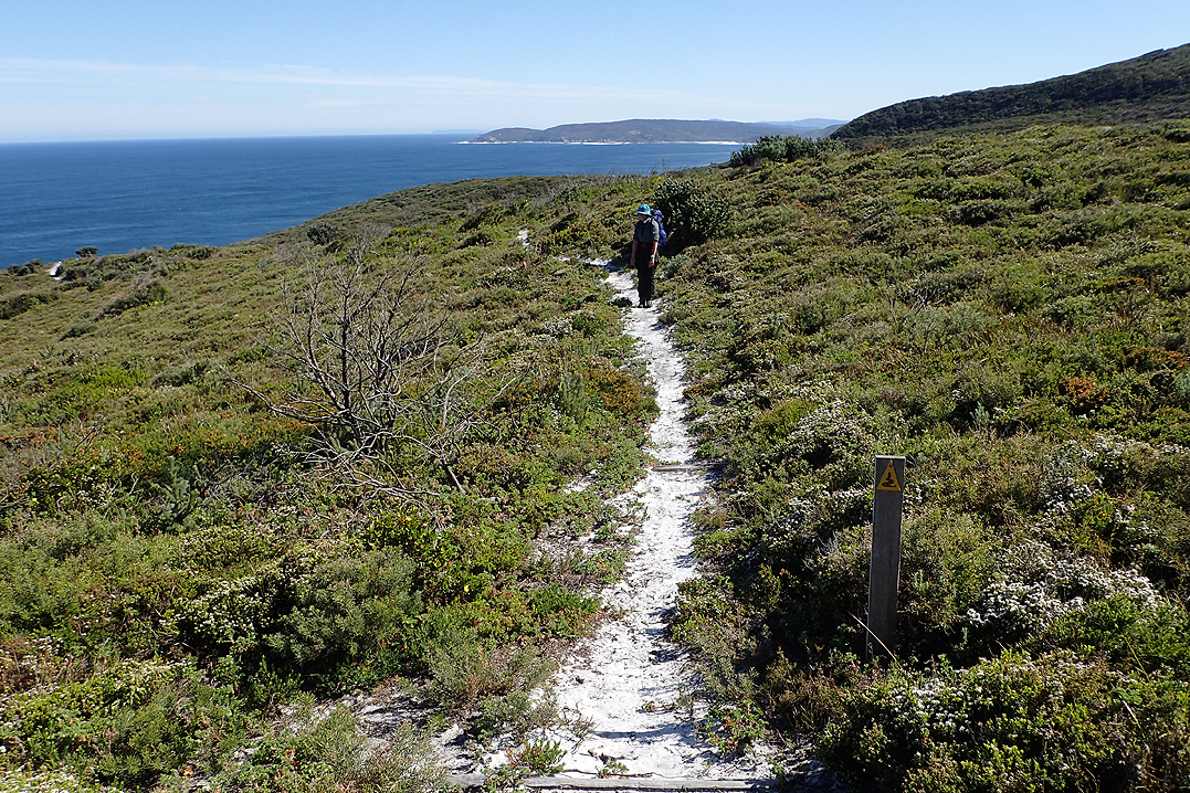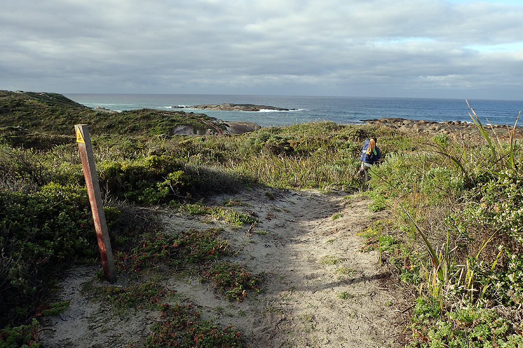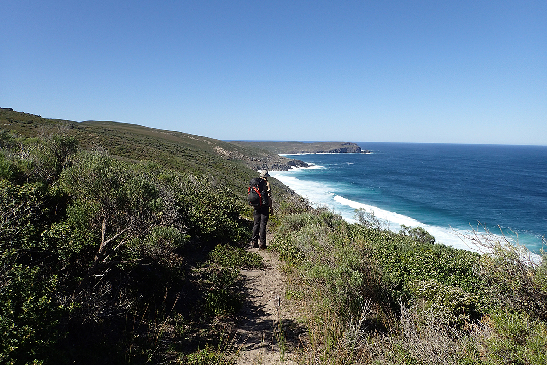 It’s expedient to say that this walk along the south coast is the jewel in the crown of the Bib so I don’t keep having to remark on the beautiful scenery. We were very lucky with the weather, clear skies and no wind. Who would believe that? South Coast of WA at the end of winter? The walk is often right along the headland and the views down to the beaches below are gratifying. Maybe not so for the hiker we met along the way who’s comment "absolutely bloody buggered" aptly described what most hikers go through at some point!