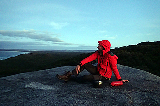 We woke extra early to get up onto the rock and cook brekky and have tea etc. By this stage of the trip we would get up, stick our feet into our boots and sort of stagger about for probably 15 min before our feet had any chance at articulation. This is important if you are going to clamber up onto a rock in the dark and not meet with calamity. Even the roughly 400-500mm raised platform inside the huts were almost impossible to step up and down. If I got up on it I would have to climb off backwards, like a toddler. We finish the way we started!