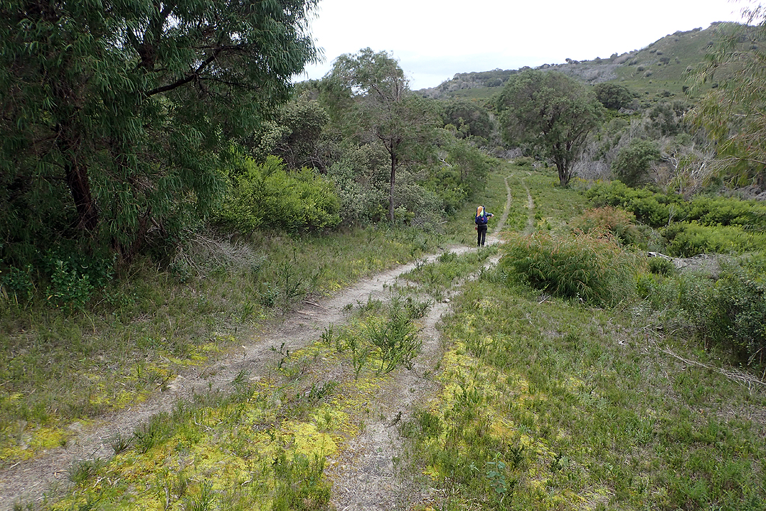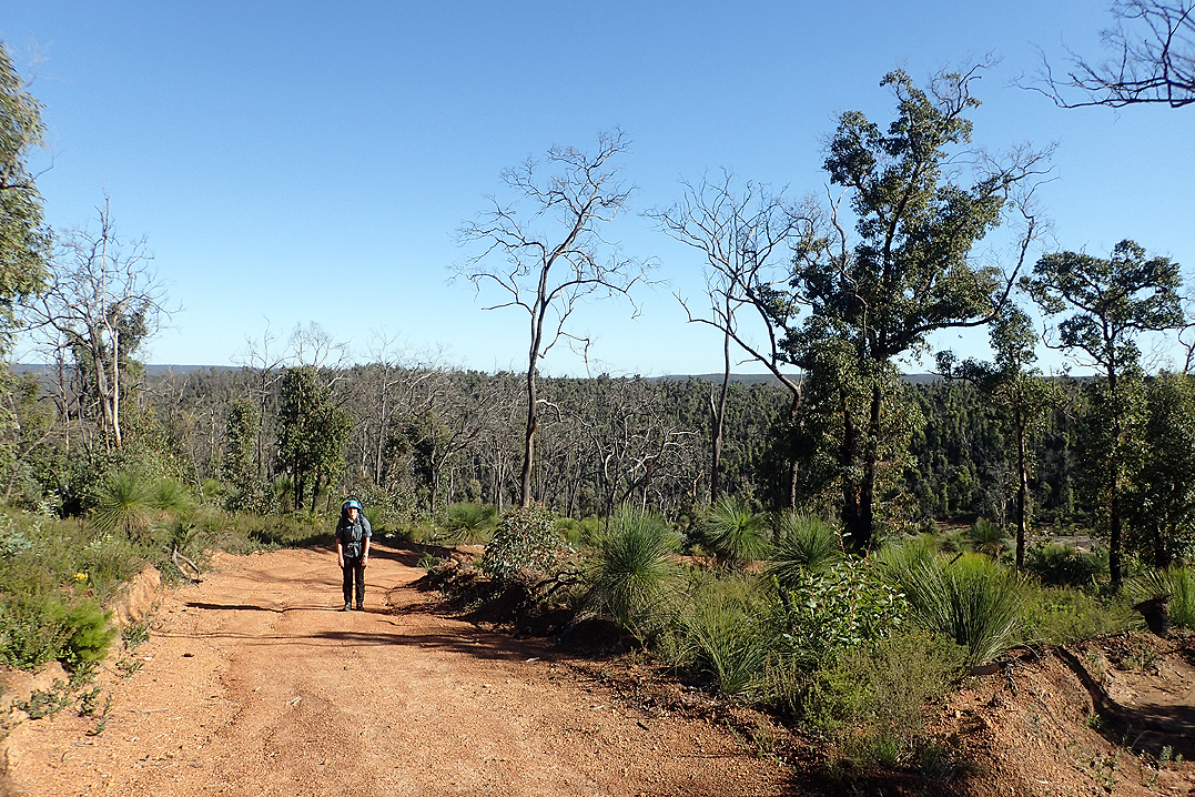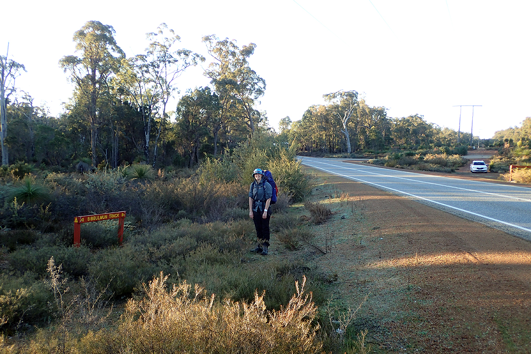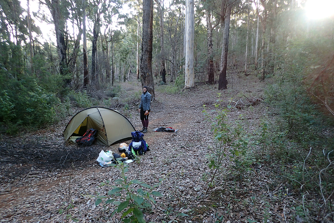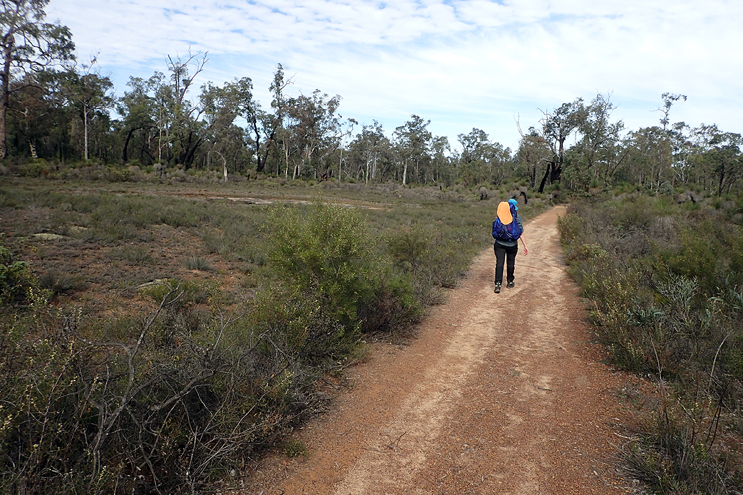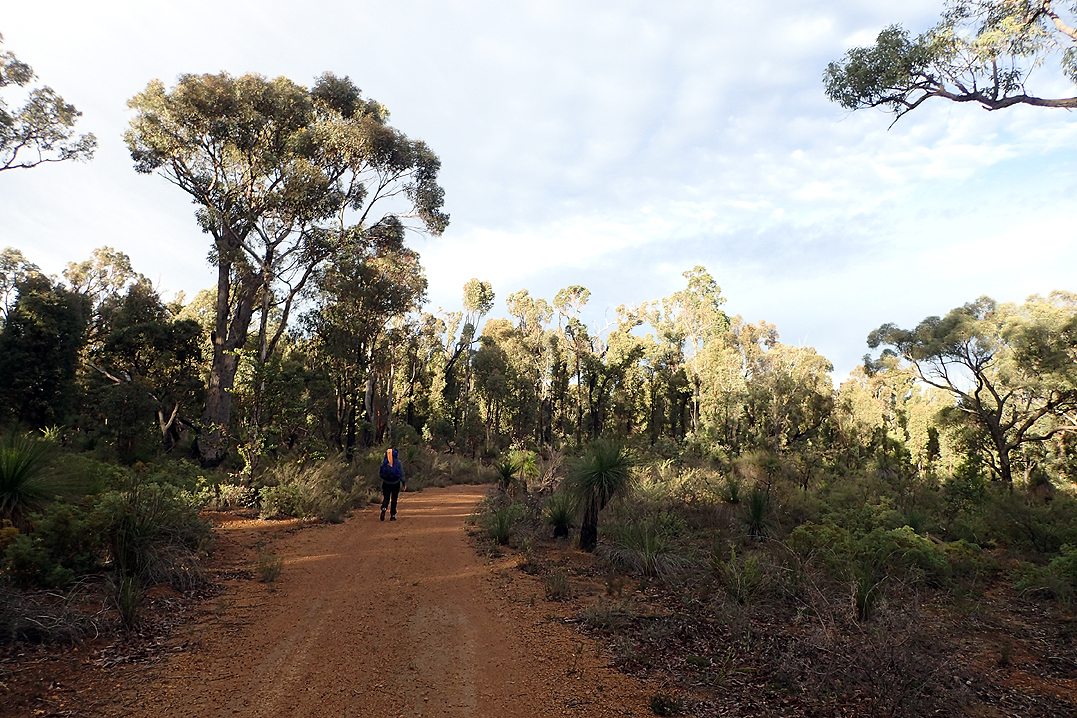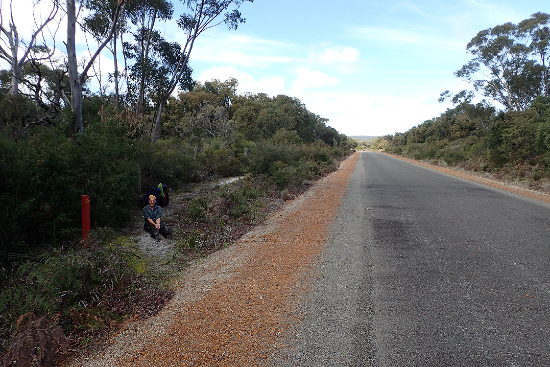 Geoff and Dolly caught up to us at Ginger Creek. Most hikers pop off the trail here to walk 1 or 2 km to the service station to buy an ice cream or sausage roll. Seems like a big effort for not much reward. We were to go on to our first bush camp. On the way we crossed Albany Highway. You would think that being within 100m from a National Road would guarantee you mobile reception at least, alas it was not to be. This would be a continuing theme of the trip. No signal at all, let alone the internet. We reflected on all the cycle tours we have been on in remote Sweden and Finland and almost always have both.