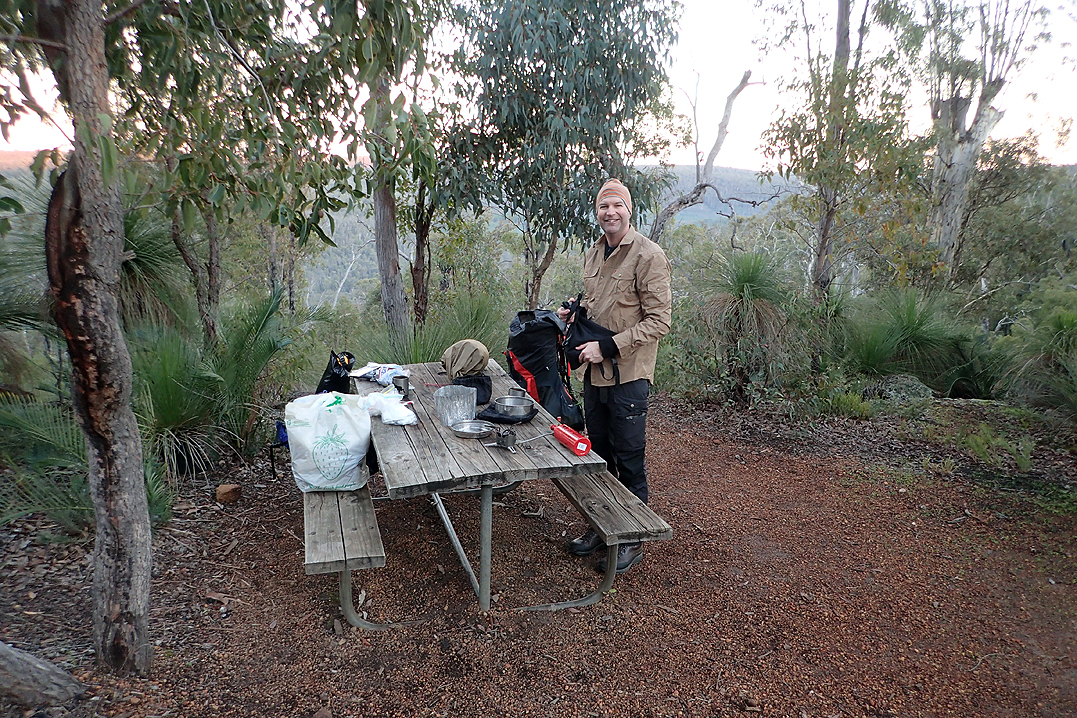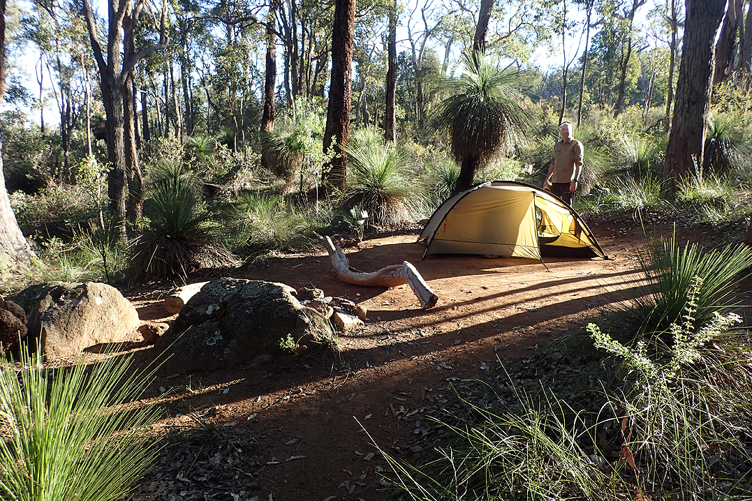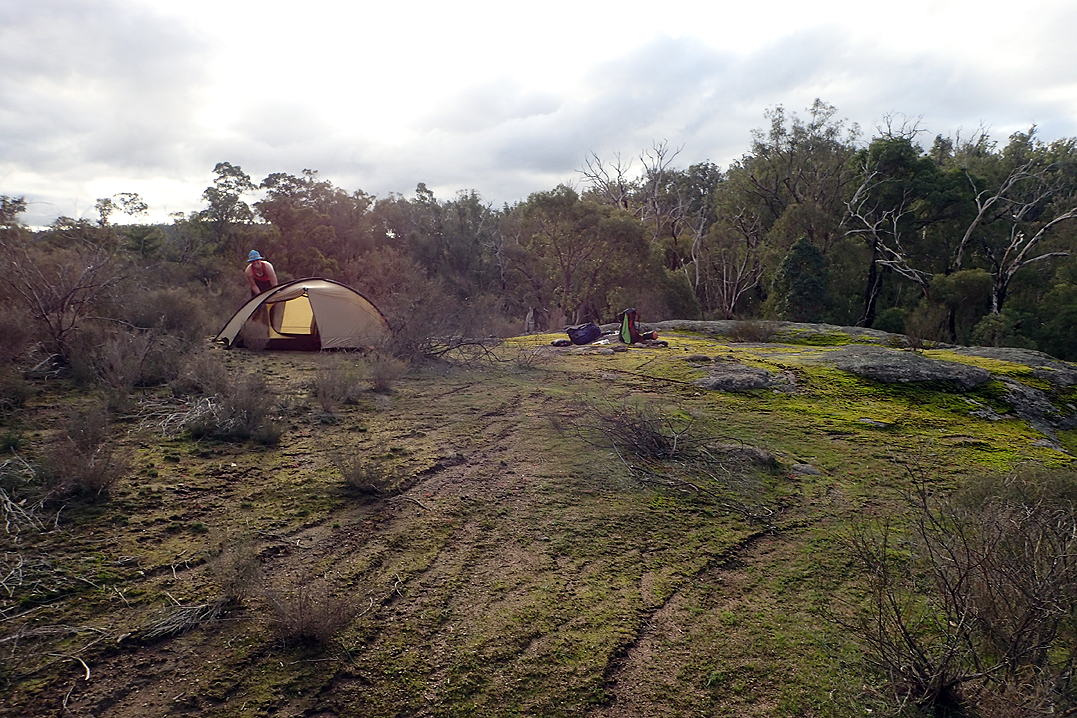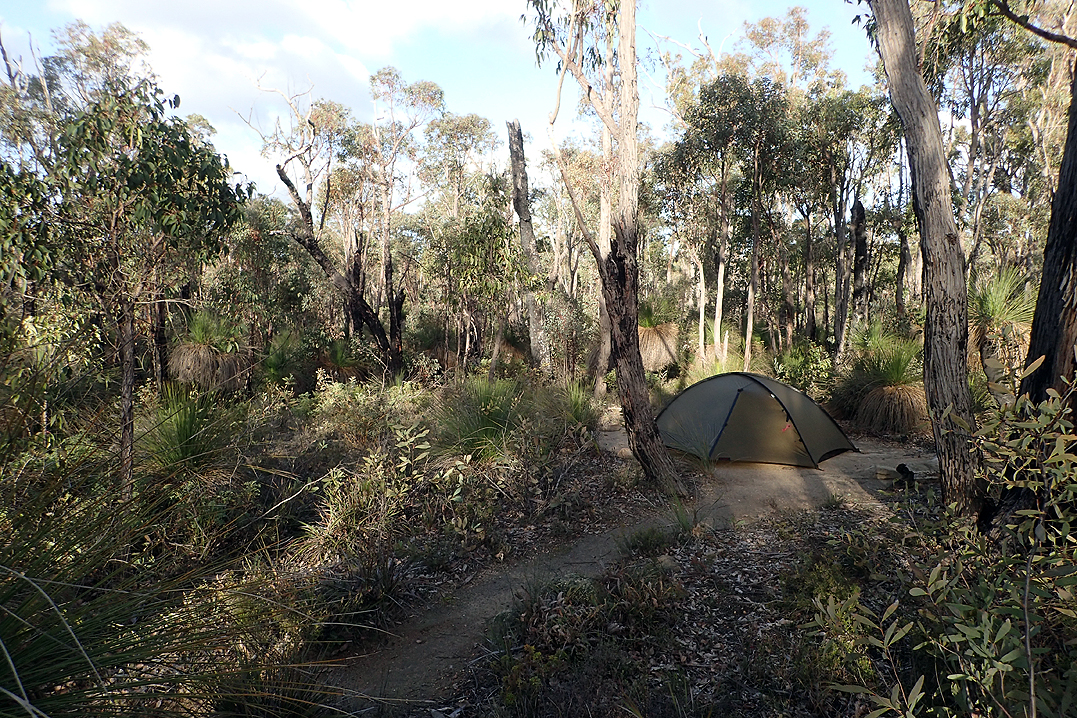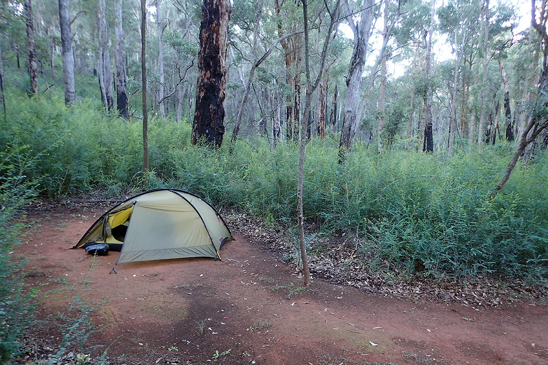 Luckily it was a shorter day today. We felt a bit sorry for ourselves after our long day yesterday! It was still a double hut day and we did not even go to inspect the hut we bypassed as it was a little off the trail. Brookton Hut was empty when we arrived and stayed that way. The weather for the first three days had been perfect, and would remain so all the way passed Collie. Nights were perfect for stargazing but very cold and also we couldn’t stay awake long enough. Our new Hilleberg Rogen hiking tent is definitely on the cool side, probably due to the internal doors being mesh only. Hiking is all about saving weight! Often during the cold nights on the Bib, I would be half asleep and have the urge to close the tent inner, then realise it was closed already! We discovered that the warmest sleeping option was facing the door which is counter-intuitive.