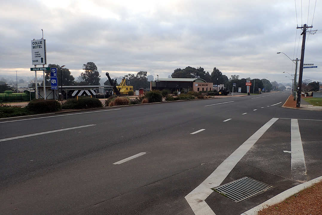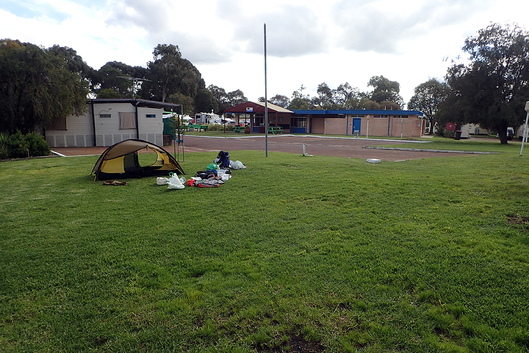 Overnight I found my mattress losing air and we found on closer inspection in Collie that I also had a puncture. We decided to purchase a foam camping mat which we cut in 2 so that we could each have an extra layer of protection under our mattress. Also, since Mike’s puncture we had been placing our rain jackets under our mattresses for protection. So now we had a mattress for our mattress. The joys of modcons. We resupplied at Collie and camped at the campsite in town which meant hot shower and laundry! As well as the foam mat, we bought an extra pair of scissors as those in our little leatherman were not functioning properly. Also a heavy duty elasticised knee brace as my right knee had swelled up alarmingly.