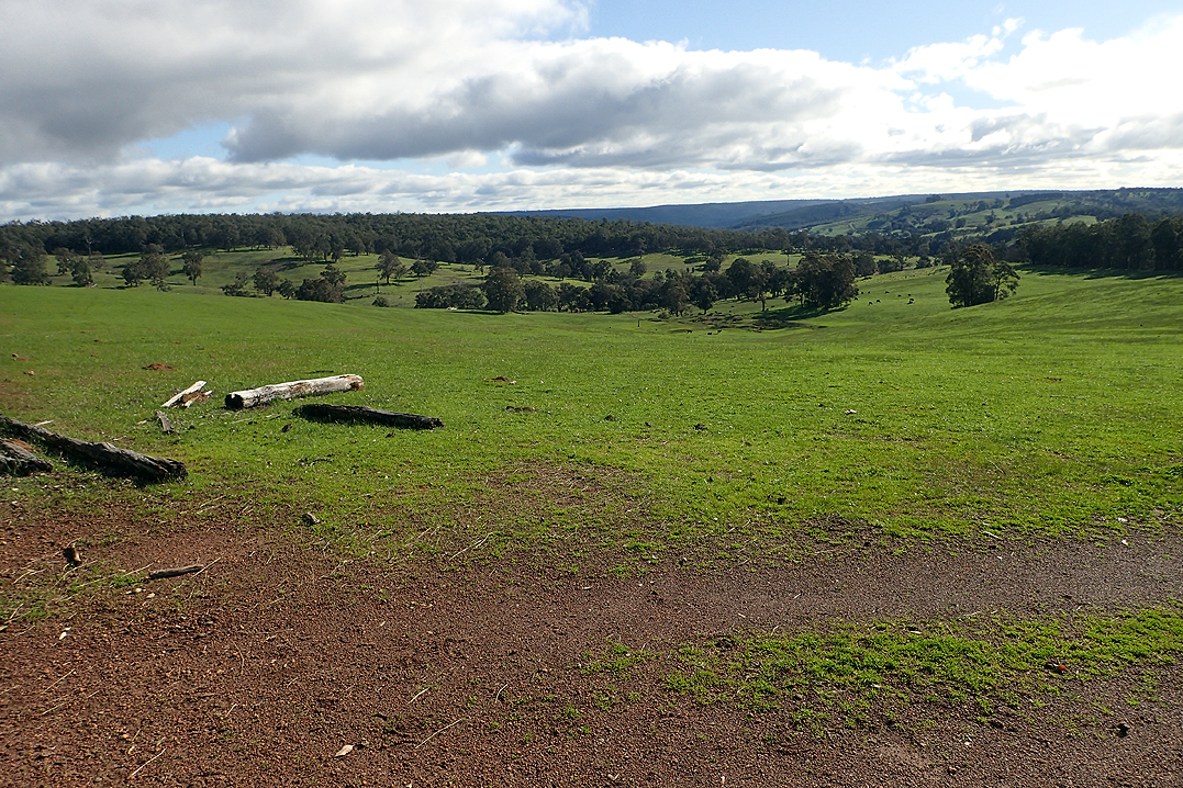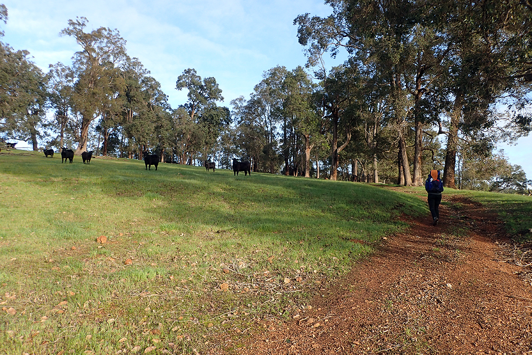 Just as we were packing up to leave, two walkers came towards us from Schafer direction, Kayla and Jake, an early start to catch their bus. On our way we had some flooded paths to negotiate (if only we knew what was to come!) and passed a dairy farm where we saw a three day old calf in the pasture with its mother. The dairy farmer, driving along in your typical farmer Land Rover as old as me with side mirrors abandoned or attached with an old leather belt, stopped to have a yarn. 30 minutes later we got going again! So interesting though, he told us that WA milk is actually the best quality in the world. We agree.