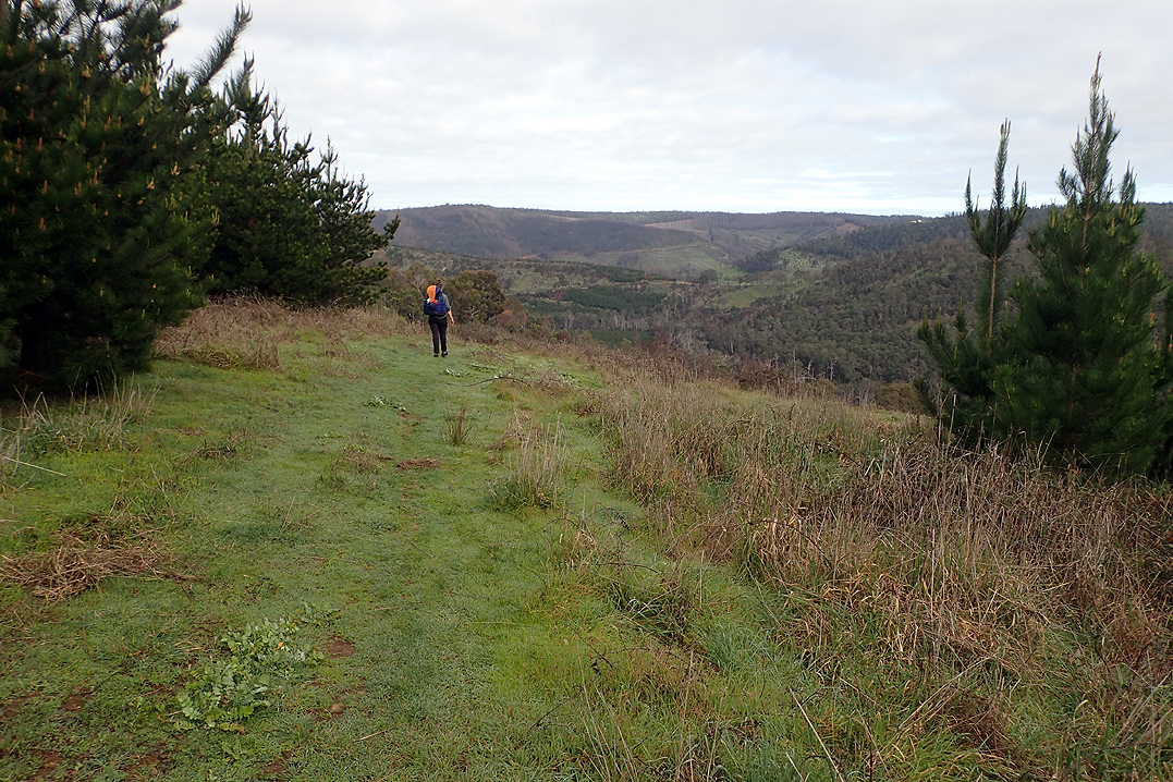 Happily we had no rain overnight and the first obstacle this morning was, yes you guessed it, running the fallen tree gauntlet again. We had started to find that our feet no longer recovered overnight to their usual state. For the first week or so, even though your feet were quite sore and tired by the end of the day, they miraculously repaired themselves over the 11-12 hours spent horizontal overnight. We were now waking to slightly swollen feet still which were not as nimble first thing in the morning. This, along with the slippery dew, made Mike a bit nervous doing the tightrope walk over the log with each pack. I watched and applauded. Then I scooted across on my butt and promptly fell into the mud again on the other side, this time onto my knees and front just to even things up.