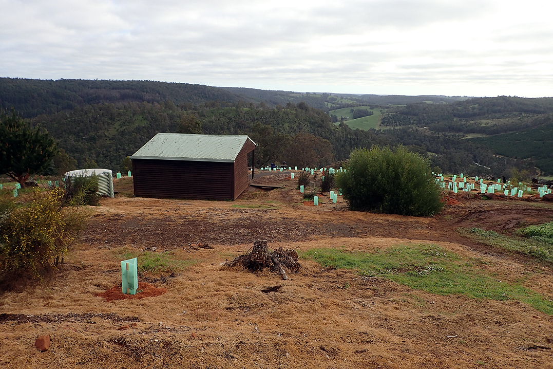 We walked 5.3km along the South Coast Highway, 1.7km along the Munda Biddi and 7.8km along Eden Rd. We then rejoined the trail and it was 2.5km further to Nullaki Hut. The walking was easy, even along the highway as there was a wide shoulder. Along Eden Rd you pass through farmland which is interesting. We presume some hikers do this walk but many avoid it as it seems it is the last option recommended. We think that the Bibb Foundation should make this an official part of the trail. When you consider the trail in its entirety there must have been many areas where plans would have had to be made to get around some sort of diversion. It does not seem that it would be too difficult to create a trail path along that stretch of highway. We find it strange that the "purists" will complain about walking a short distance along a road but have no problem climbing in a car.