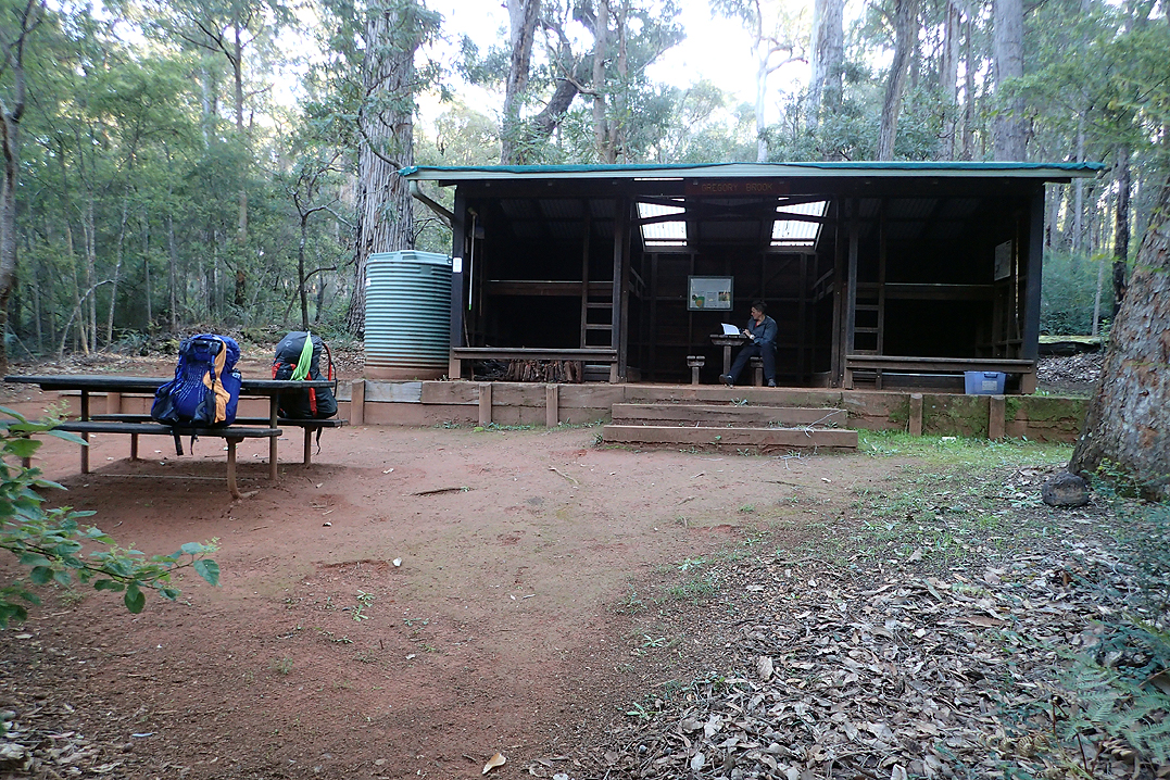 It was less than a 1km walk to Warren Hut and we were there early enough to wake two of the three hikers who had overnighted there. There was a couple, Kayla and Jake and a solo walker, Kade. We would meet Kayla and Jake a few times more on the walk. At this time they had driven to Pemberton and were walking to Northcliffe and would then take the bus back to Pemberton. Kade was getting back into walking after leaving his Southbound E2E at Donnelly River Village. His plan was to take the bus from Northcliffe to Denmark, from where he would walk into Albany with the walking partner he started the hike with, and then walk back Northwards, filling in the sections he had missed.