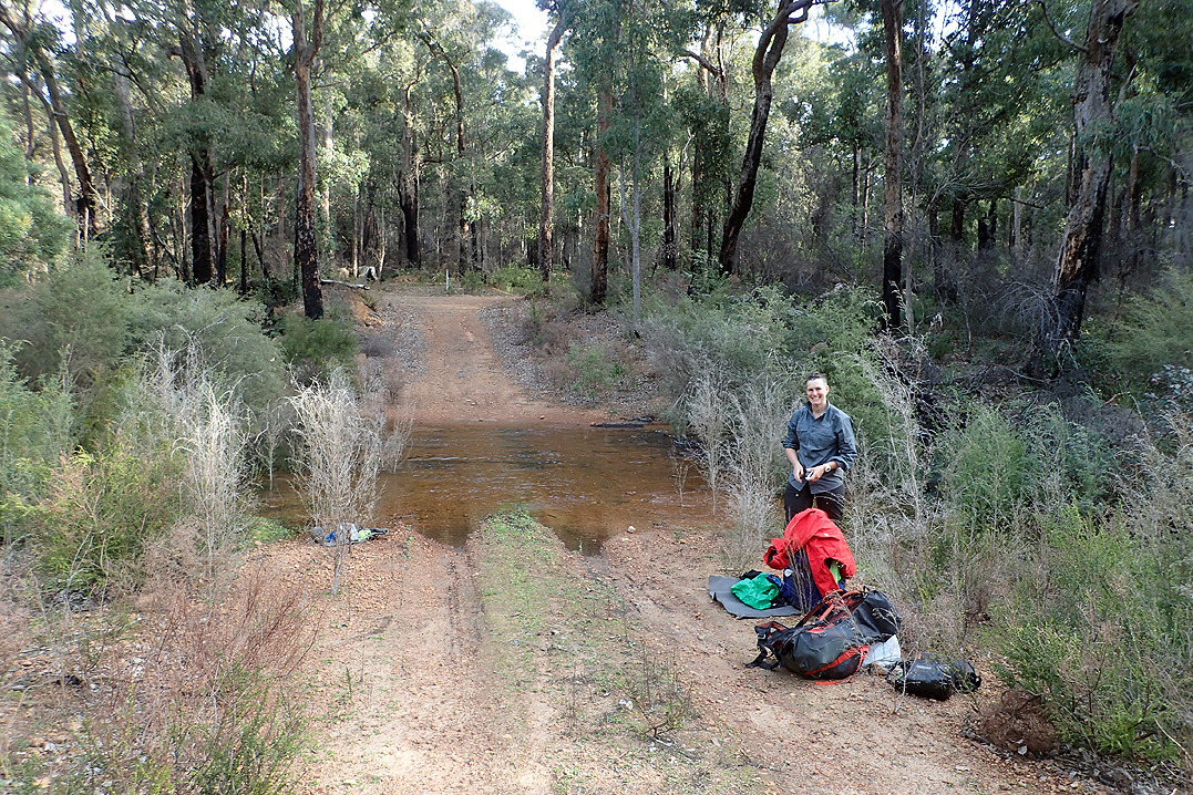 The walk from Pemberton to Northcliffe is one we had done before (way back in 2006). This year we managed to re-visit both our previous campsites which was quite cool! It was two nights from Pemberton to Northcliffe and the weather was good again. Our first camp spot was right on a ford in the river, so an easy swim.