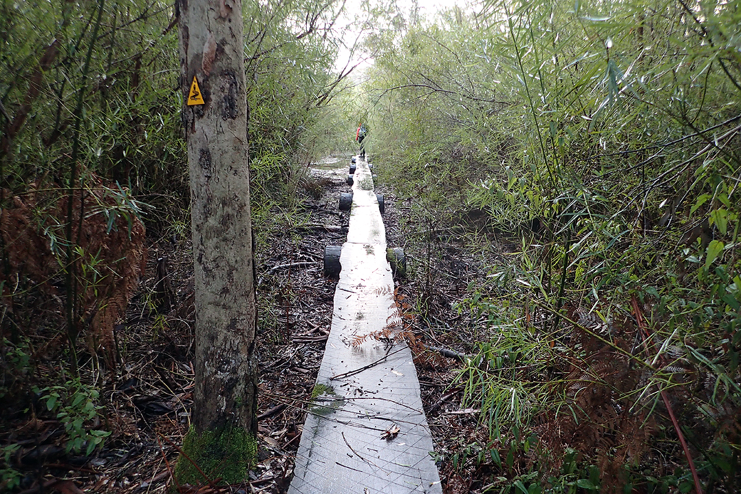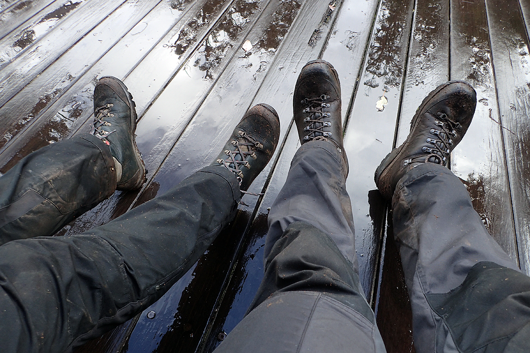 It was getting quite late and we wanted to make the hut by 17:00. Going downhill my foot slipped on a wet log and I fell flat with my legs straight in front of me. It was very painful around my left knee. So just like that my bad knee became my good knee and I had to transfer my knee brace from the right to the left knee. I guess this is what middle age feels like.