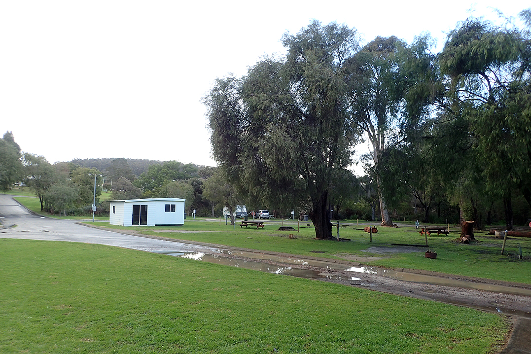 It was a lovely walk into Ballingup, with plenty of flowing streams, pristine farmlands and wildflowers. The village itself was pretty, with a cute municipal campsite and showers just before you arrived on the main street. If we were cycle touring we would have been really impressed with it. Beautiful grassy spot and space for a couple of vans or tents.