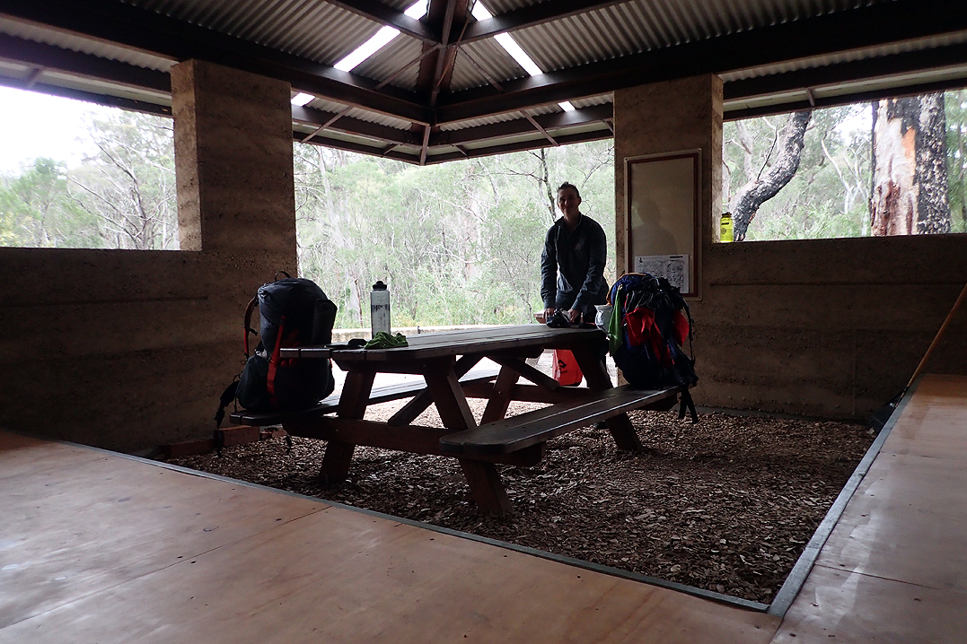 The weather was much better today with clearer spells. Our walking pants had been soaking wet this morning but dried out through the day. Beedelup Falls was a highlight. It has really good infrastructure around it with lovely boardwalks. The hut of the same name comes shortly afterwards. We would camp in a hut tonight for the first time as the weather was expected to be bad overnight. The Bib huts are either an older design with the internal space taken up by bunk beds and a table, or a newer design where they are quite open with a big L-shaped platform and a table undercover. Each time we decided to put up our tent inside the hut it was the latter, which was convenient as we could not have done it in the former. Our tent is freestanding , you just lose the vestibules if you set up inside, which doesn't matter as we hang our packs anyway due to rodents in the shelters. The rodents are usually water rats, so not the gross urban variety. Still, I don’t want one running over my head in the middle of the night, so we put our tent up. Having said that, if there was another hiker at the hut we would have pitched the tent outside. We don’t think it is right to use the tent in the hut if you are sharing.