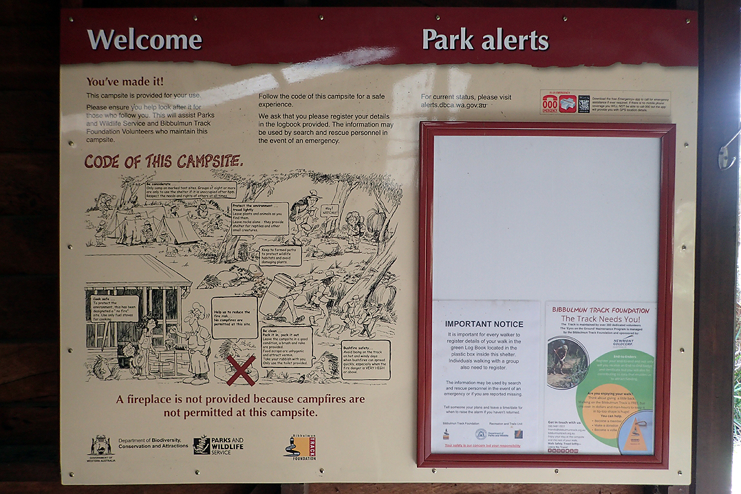 We were starting to look out for Brendan’s amusing comments in the logbooks. He was a 25 year old from Kalgoorlie who was travelling alone and set out the week before us. There was also a group of three girls from Fremantle. The hike is so strange as you start to follow these people’s journey ahead of you both literally as you follow in their footsteps and figuratively as you sort of start to build a phantom relationship with them having never met them. At the same time they have no idea that you exist! Another strange thing is you might "meet" someone via their entries who is going South to North on the trail and so as you advance and read each one you are actually going back in time to the start of their journey!
