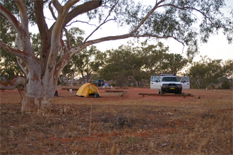 Day 4, and only a relatively short day. We visited the Living Desert Sculpture Site which was awe inspiring and offered great views of the surrounding plains and Broken Hill in the distance. Did some geocaching in Broken Hill and then visited Silverton, which has featured in a number of international movies. The local campsite seemed somewhat of a dusty bowl, so after lunch, we were happy to move along to our next destination which was Kinchega national Park. We drove around the entire park and decided to camp at the Lake Cawndilla Camping Area, but there was nothing that looked like a lake. In fact, we did not see a drop of water, which just shows how the drought is taking its hold on the land. We drove to the Kinchega Shearers' Quarters which, after giving us a brief history lesson, allowed us to have a shower in the only amenities block in the park. Once again, the campsite proved to be an absolutely wonderful place to spend the night.