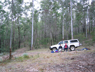 Past experience has shown us that most campsites in NSW become noisy and chaotic with drunken louts over long weekends and are therefore best avoided during these times. Therefore, over the October long weekend, in order to get some peace and quiet we decided it would be great to hike into the Colo River Valley in the Wollemi National park and camp on the river bank. We accessed the National park from Putty Road via the Alidade Hill Fire Trail, and although the dirt road is relatively good, some places do require a vehicle with a higher clearance. We left the car in the parking area at the end of the road (which is only about 9 km long) and hiked down into the river valley.