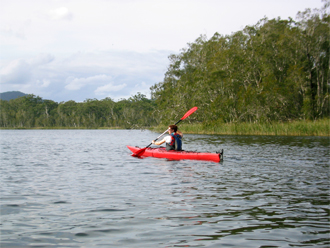 Myall Lakes National Park is a Ramsar Wetland of International Significance situated approximately 200 km north of Sydney. There are various campsites in the National Park, and we decided to camp at the Korsmans Landing campground situated on the western side of Two Mile Lake. Access is off the Pacific Highway, near Bulahdelah, along very good gravel roads. Although we shared the campsite with some day visitors over lunchtime, we had the whole place to ourselves by the time the sun went down. There are new pit toilets but no other facilities at the Korsmans Landing campsite, but having a swim in the lake was most refreshing. We camped quite close to the water which meant we didn't have far to carry the kayaks. We spent quite a few hours kayaking on the water and saw quite a bit of birdlife - most notably some Pelicans.