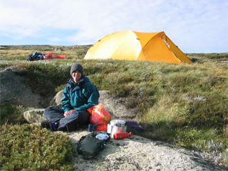 The next morning we awoke to the sound of rain falling on the tent. Packing up in the rain was not fun, but once on the move, we made relatively quick progress. The Hill up from the Snowy River to the Charlotte Pass car park was somewhat steep, but once onto the fire-trail it was easy walking. We couldn't miss the opportunity of boiling up a cup of coffee at hikers hut, where it was at least out of the rain and howling wind. Although, we still had an extra day in hand, based on the weather, we decided to get back to Thredbo, and drive all the way home. It was a long day, but at least we didn't have to fight all the traffic at the end of the long weekend. The hike was great, and would definitely like to visit the area again.