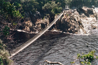 The Storms River Mouth Rest Camp in the Tsitsikamma Coastal National Park is our Paradise. As far as we are concerned, it is undisputedly the most beautiful camping spot in the world. Having visited it throughout my childhood and seen the various changes taken place, it is still the best place we have camped, ever. Since the two of us first started going out, we have camped at Storms River Mouth for at least ten days out of every year while we lived in South Africa. The non-powered tent sites are demarcated clearly and have ample space available. This is definitely one place where, even when it is full, you are not camping on top of your neighbour. Each site comes standard with a brick braai (barbecue) and the sunsets over the sea while braai-ing, with dolphins making their evening swim past, just cannot be beaten. Just remember, to get one of the sea-front sites you will have to book at least nine months in advance. Activities include numerous short walks through the rainforests or swimming/snorkelling/scuba diving in the environmentally protected waters, which is awesome as the underwater life is abundant. Some years we took mountain bikes and cycled in the local pine forests, other times it was road cycling up and down the access road. The best known hiking trail in South Africa, The Otter Trail, also commences here and takes one on a 5-day hike (42 km) westwards to Natures Valley -- See our trip report below.