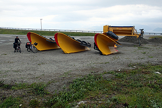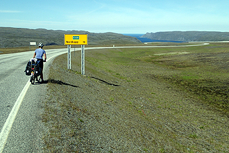We set off around 8:30 am and had a nice ride in to the Kirkenes. The last 8 km were on a cycleway. We arrived at the hotel at 12:30 pm after stopping for lunch and were really happy to be checked in that early. As for Kirkenes, I have made some false calls along the way as to the Frontier. I am happy to report that THIS IS IT. There is nothing going on here. It is definitely THE FRONTIER. We are happy to go this far east and no further. Russia is only 7 kilometres away, and Finland was about 10 kilometres from last night's campsite. Tomorrow we backtrack to Finland.