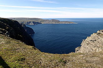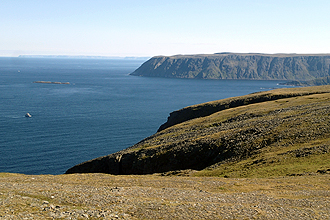I woke at 1:00 am to answer a call of nature and was just in time to catch the sunset over the ocean. Beautiful to see the sunset over Nordkapp, although it doesn't actually get dark. We woke for the day around 6:30 am but were unhurried. We feel a sense of achievement in reaching this point. It seems as if we have been aiming for this most northerly point of Europe for some time. This area has a magnetic pull and we felt like staying longer. The weather was not as good as yesterday, we still could not believe our good fortune, but still good enough. At least the cloud cover was white not grey! We had 20-odd kilometres to ride back to Honningsvåg and the Hurtigruten Ferry to Kjøllefjord so no rush, and even enjoyed the steep climbs back. We had a few herds of reindeer to avoid on the road, which was quiet this morning as we headed south for the final stage of our journey.