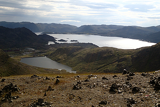 We had a few drops of rain last night, but none today and although it was overcast it was mainly warm with no wind. Things seem to be stabilising already as we move south. Today's ride was probably the most beautiful of the entire trip. This is quite a statement to make but we were blown away by the amazing landscape that we rode through, particularly in the first 60 km. There were three major climbs on the day and the first two took us up into a moonscape environment, just rocks, lakes, waterfalls and rivers. It was very beautiful. We were up high with only the silence and reindeer herds for company. It felt so remote. The road swept ahead, curving between boulder strewn hills. Although towns are marked on the map, they were generally nothing except a cluster of houses. We found our first shop at Lebesby, after 90 km of riding.
