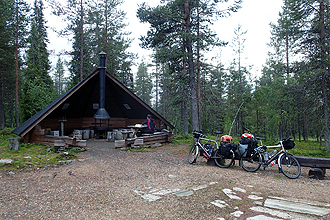 We have seven riding days to Lahti, where we will catch a train the short distance to Helsinki. Mike replanned the route and we will have five days where we will end at laavu's which is perfect as it means we still have the bush camp experience with no hunting around! We were on quieter roads today and some gravel road riding as well, about 16 km of it. The weather is still good although rain is forecast for the end of the week. By definition Finnish lavuu's or lean-to's have to have a campfire place, wood supplied and a toilet. We bought meat to cook on the fire again this morning and set off. We do not see reindeer anymore and will drop below 63 degrees North by tonight. There are still bugs but far fewer. We passed 9,000 km today for the trip to date!
