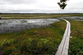 We felt tired this morning and ended up leaving around 8:30 am after a slowish start. We remain on the same road today that we took over the border yesterday, and would not meet one intersection the whole day. No roads will meet this one at all! It feels remote, and makes navigation quite easy! There are distance markers to Ivalo, which we will go through tomorrow and later Kaamane. The fact that there is a distance marker lulls you into a false sense of security. It does not mean that these places have any facilities, shops, etc. We would only pass one shop/petrol station today, Sevetin Baari, after about 27 km. We have learnt to look for petrol stations rather than shops on the GPS in these remote areas as the petrol station often has a shop as well. The road continues flat and straight through pine forest and birch grove. We had some light rain this morning and passed under some huge dark clouds throughout the day, but the heavy rain only fell in the evening when we were in the tent and that is fine with us!
