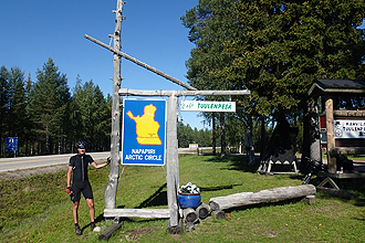 We had a critter-free night and woke to another beautiful day. We left before 8:00 am and stopped on the way for food for the day and also more cloudberries which we would eat on the road with Greek yoghurt for lunch. We were still on the E63 (Route 5) and throughout the day climbed at a low gradient to over 300 m. We had a bike path for about 10 km after leaving the town and on the way we saw a small boy waiting for the bus in brand new school gear, so school holidays are over too! Quieter roads and campsites for us. Kemijärvi has a railway line that runs between it and Rovaniemi and this is the first time we have seen a railway line since Bodø in Norway. After about 45 km we crossed the Arctic Circle. We have been in the Arctic since 17 July so that is a large chunk of our time here. We expect the weather now to remain perfect and the mozzies to disappear!
