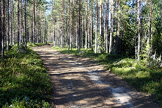 We had good weather and a slight tailwind all day and the route wound through birch groves and pine forests with thick ground cover including furry lichens and forest floors strewn with ruby red berries. You could have just stopped and eaten berries all day. We stopped and bought Cornflakes for breakfast at the first available shop. We then had some riding along a cycleway but it was not long before we were on the E6 at Luumäki which had an interesting design feature. The road was wide, almost wide enough to be a dual carriageway with a fairly narrow shoulder. Just on our side of the white line were continuing corrugations as rumble strips, to let motorists know when they were veering off the road. This left precious little room for us to cycle on as you can't ride on the rumble strips. Sometimes the bitumen had a drop off and then we would go over the white line leaving the shoulder. We had to concentrate quite hard, no gazing around at the scenery. For this reason we opted for the gravel road cycleway when it reappeared. Later on we used the E6 again and the shoulder was wider. It was all a bit ad hoc but generally okay. There were no signs advising which route was intended as a cycleway and as usual we were guided by the GPS maps which clearly show suggested routes.