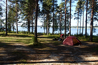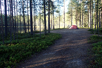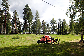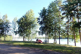On waking we had 3 km to go along the gravel road until we reached the main road. Then we had a choice, we could take a very quiet tertiary road south to Lieksa but we were unsure of the road quality, or we could ride to Lieksa via Nurmes which would be longer but at least we knew what to expect. We chose the latter. The day was long, very long, with nothing to see along the way. We rode 115 km without seeing a shop or a petrol station or a point of interest. It was pretty boring and after a while of being in remote areas we might have had enough of it! There is only so much you can mull over in your head as you ride to remain conscious. On the plus side, the road was good, as was the weather and it was easy riding. We both started to feel the effects of a long day on the bike however and were very pleased to arrive at the ABC petrol station at Lieksa where we had a meal. We settled in at the campsite which has a free sauna in the mornings and also access to a lovely bathing beach. We will have a rest day here tomorrow and will also relook at our route as we want to plan to end at campsites from now on. We will still use a bush camp if a good one presents itself but we don't want to have to look for one.