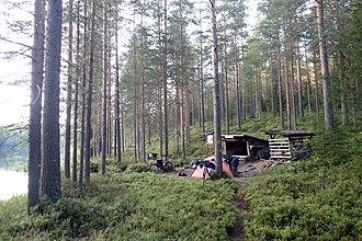 It was dead quiet in the forest and the silence was deafening. It was also dark when we were woken up by the sound of something big being thrown or landing in a lake far away. This happened about 4 more times and we were racking our brains trying to work out what it was. It had to be louder than a fish jumping and hitting the water; at least any fish of a normal size. Could it be a bear thowing rocks into the lake? Could it be that the shots we had heard were people being executed and now their bodies were being thrown into the lake from a dizzy height? We do not know. Strange things happen in the forest at night! Eventually we got some sleep.