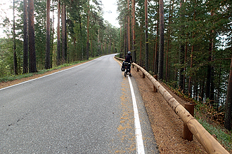 We woke to the sun peaking through the pine trees and glimpsed two reindeer making their way up from the lake below our tent to the road. After these two though we did not see another reindeer for ages until shortly before the end of the day. Could be a sign that we are moving further south. We are starting to see birch tree leaves changing colour and also more and more berries, especially cranberries now. Autumn is coming, but fortunately we still have wonderful weather. Bit of a headwind today and the road wasn't flat. Still, Riding in the Finland does make for numb hands which is a sure sign of flat riding.