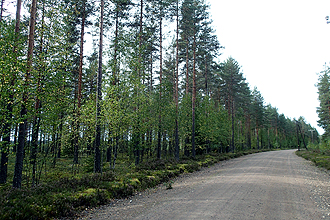 Luckily we had only a few 100 m of gravel road and then rejoined route 73 to Joensuu. Although we had ridden on this road yesterday, it was much busier today with a lot of truck traffic and many logging trucks. Also it started raining again and a busy road in the rain is not a good thing for a cyclist. About 18 km before Joensuu we had a cycle way and this was great, continuing into town. Joensuu was probably the biggest town we have seen since... we can remember. Even a McDonalds which we did not see at all in Norway or Finland up to now. We stopped at a few outdoor stores, as usual trying to track down the elusive Coleman Fuel (white gas) for our MSR stove, but it looks like we will have to resort to using dirtier petrol. Yesterday we had even boiled water on the fire! We also did some food shopping and ate a late lunch. We chatted to two French students who were interested about our trip and also a Swedish man and Finnish woman who updated us on the social issues in Gothenburg (we were there last year and liked it).