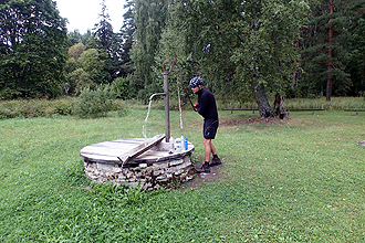 We crossed the boundary into Lahemaa National Park and arrived at Tstitre Campsite. In Estonia there are many campsites managed by RMK, the forestry commission. They are free to use and have very good facilities. This campsite was well laid out with campfire pits and covered table areas and also toilets. There was also a well! We hung up our WET gear to try and dry it out a bit. We did feel refreshed having had 4 days off the bikes. Boy, we hope this weather changes though!