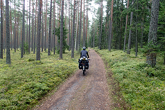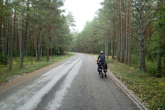 Once we got ourselves ready to leave, we walked outside into... you guessed it... pouring rain. Boy, did the weather forecasters get it wrong. This was not the 1 or 2 mm predicted. The downpours caused streets to become rivers and pavements to flood. We had not been sure whether to wait or to go. In the end we went and picked our way through to the coast to our chosen route. Estonia is wonderful for cyclists; the cycle route was very clearly marked and there are many cycleways. It also appears to be completely flat, but that could change. The road was very quiet and ran through a rural setting. It absolutely poured with rain most of the day. We haven't seen rain like this since leaving Dublin all those months ago. Torrential! It made us a little moody and we tried to forget the comforts of the Radisson. If we had stayed there we would probably just be sitting indoors watching the rain through our picture window. Sounds good to me!!!